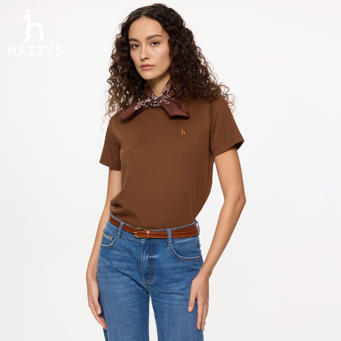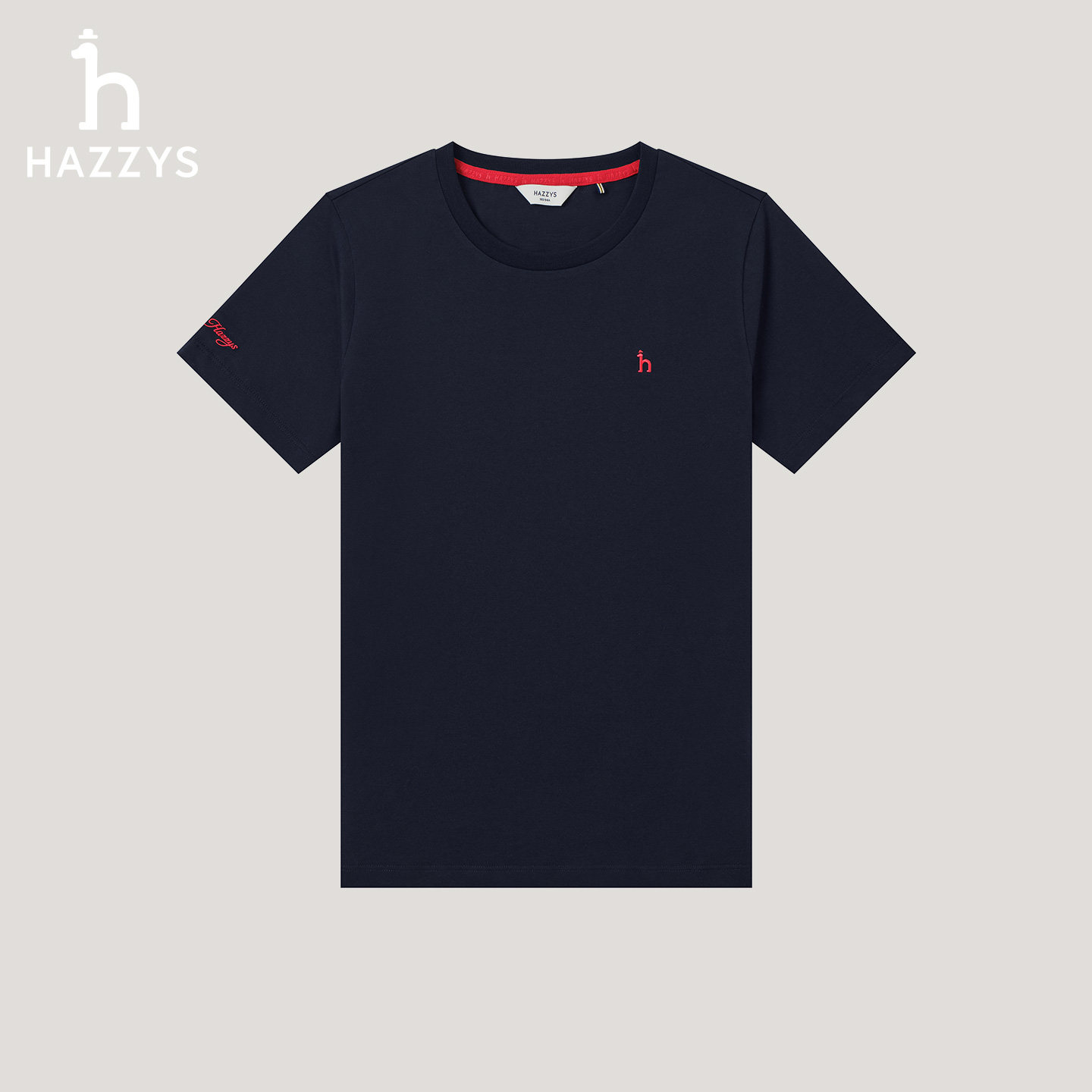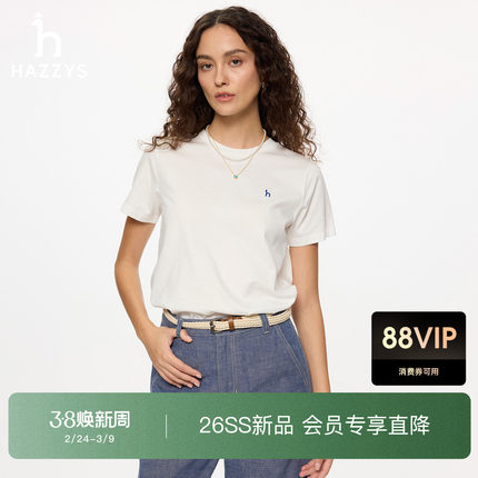【商场同款】Hazzys哈吉斯圆领T恤女春夏新款休闲时尚短袖上衣潮