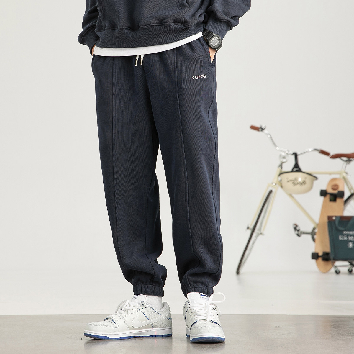 coolramon春秋季男休闲薄款卫裤纯色抽绳长裤潮流小脚宽松九分裤
