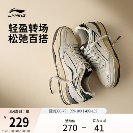 李宁月璃丨板鞋男鞋秋冬新款小白鞋复古休闲鞋轻便女子软底运动鞋