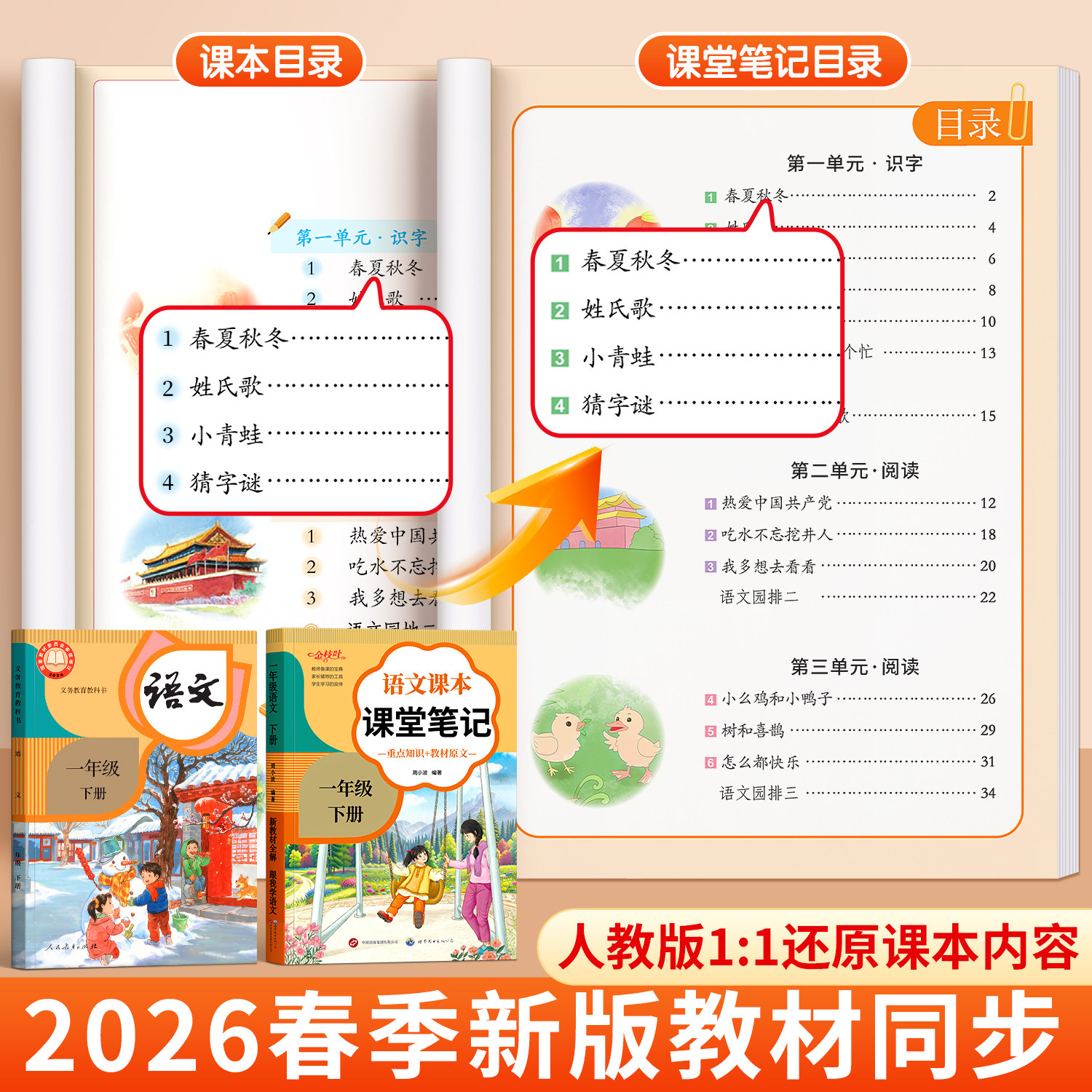 一年级语文课堂笔记教材全解上册下册小学2026新版课堂笔记人教版小学生同步练习册全套随堂笔记教材解读正版教辅资料秋季新教材
