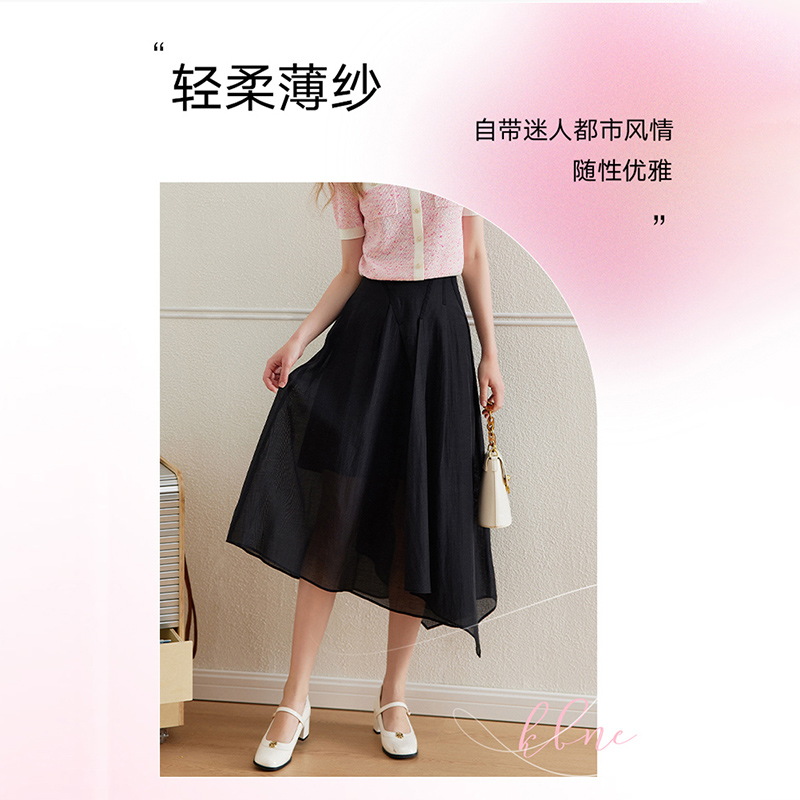 KBNE半身裙女黑色网纱裙2025夏季新款小个子高级感爆款字裙长裙