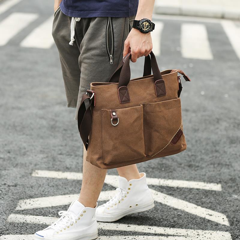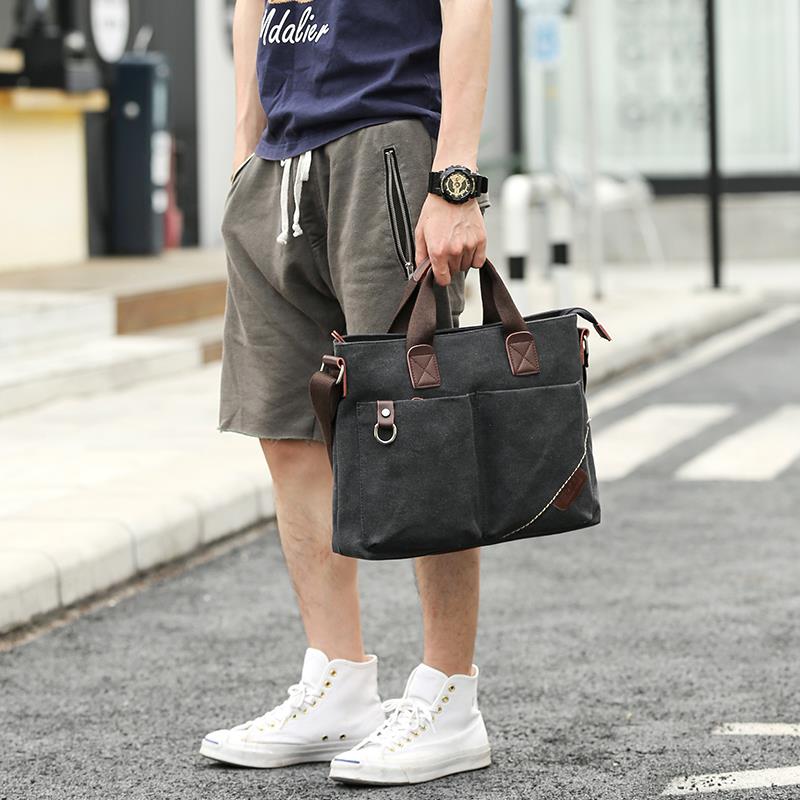奥莱男士商务出差帆布手提包休闲单肩斜挎包多功能公文包电脑背包