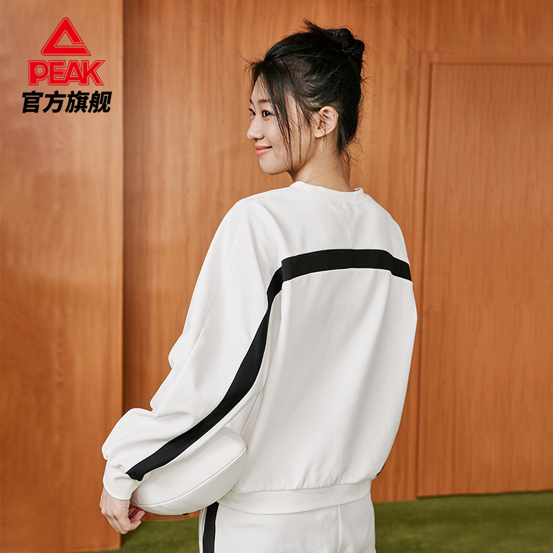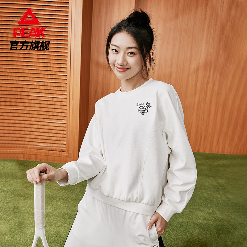 匹克圆领卫衣女装春季运动服套头打底衫休闲宽松无帽长袖针织上衣