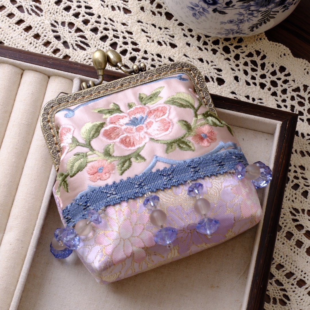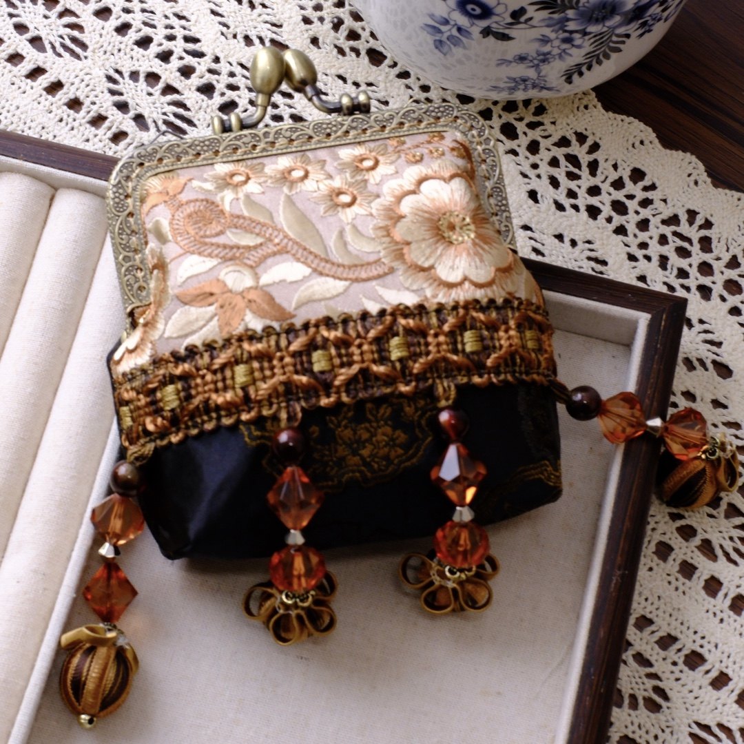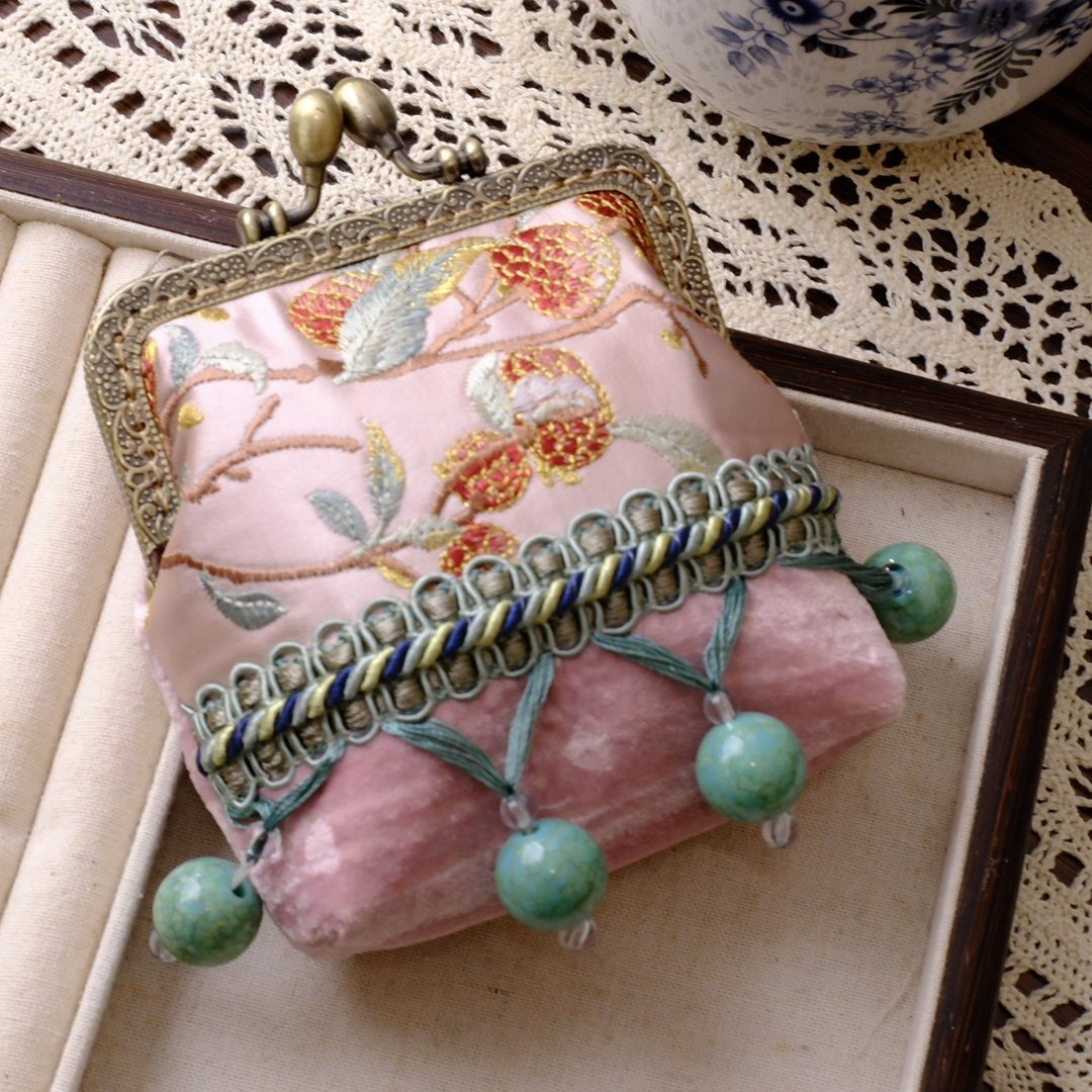 非遗口金包手工串珠新中式国风复古小挎包百搭背背链毛球斜挎包