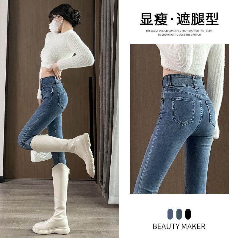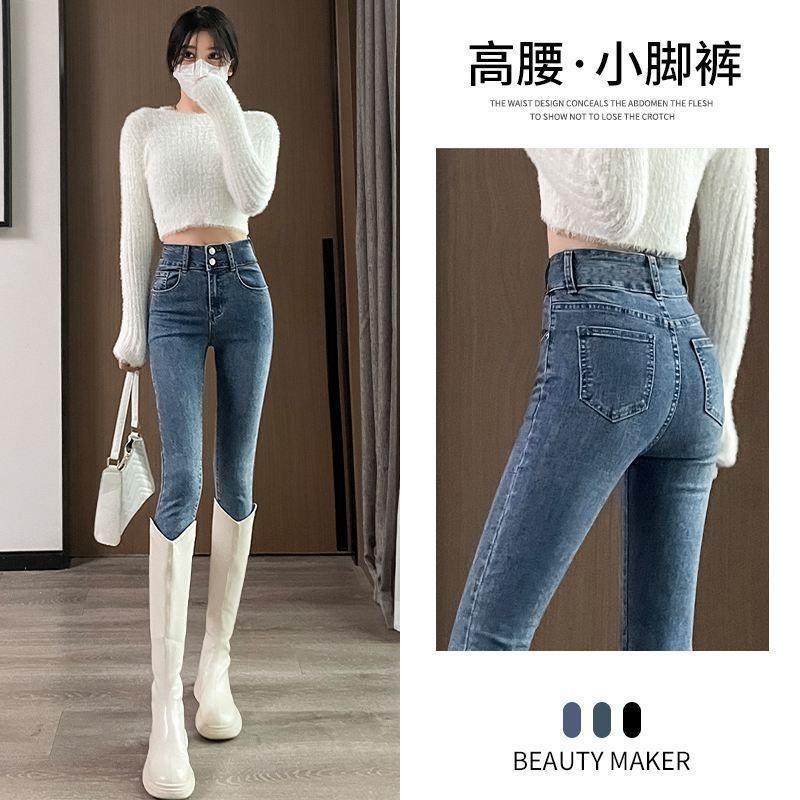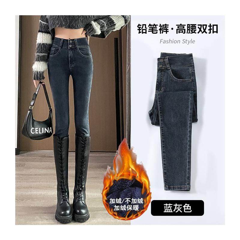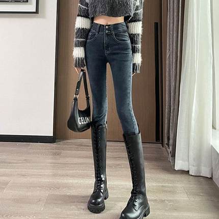 加绒加厚牛仔裤女紧身小脚高腰2025年秋季显瘦弹力修身铅笔长裤子