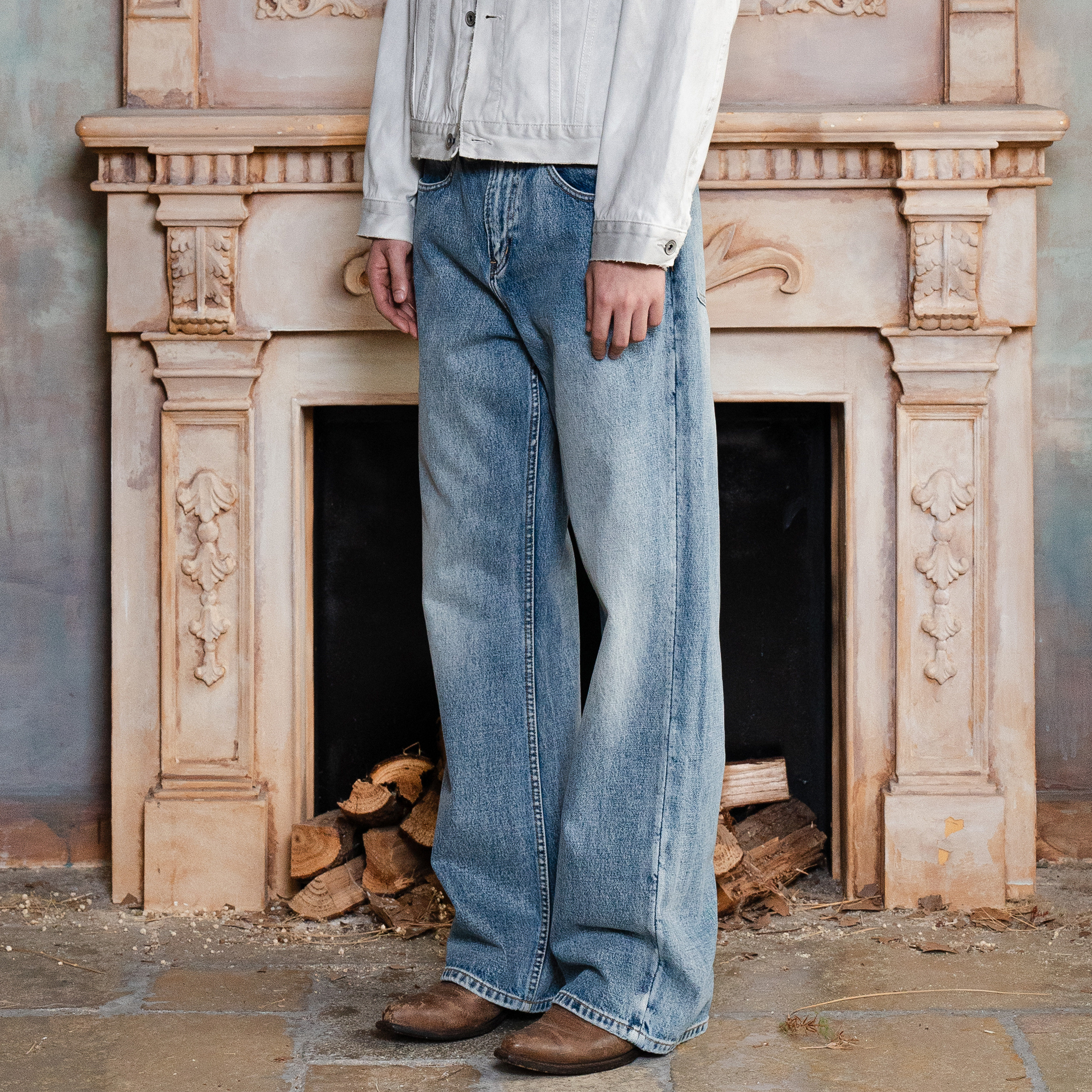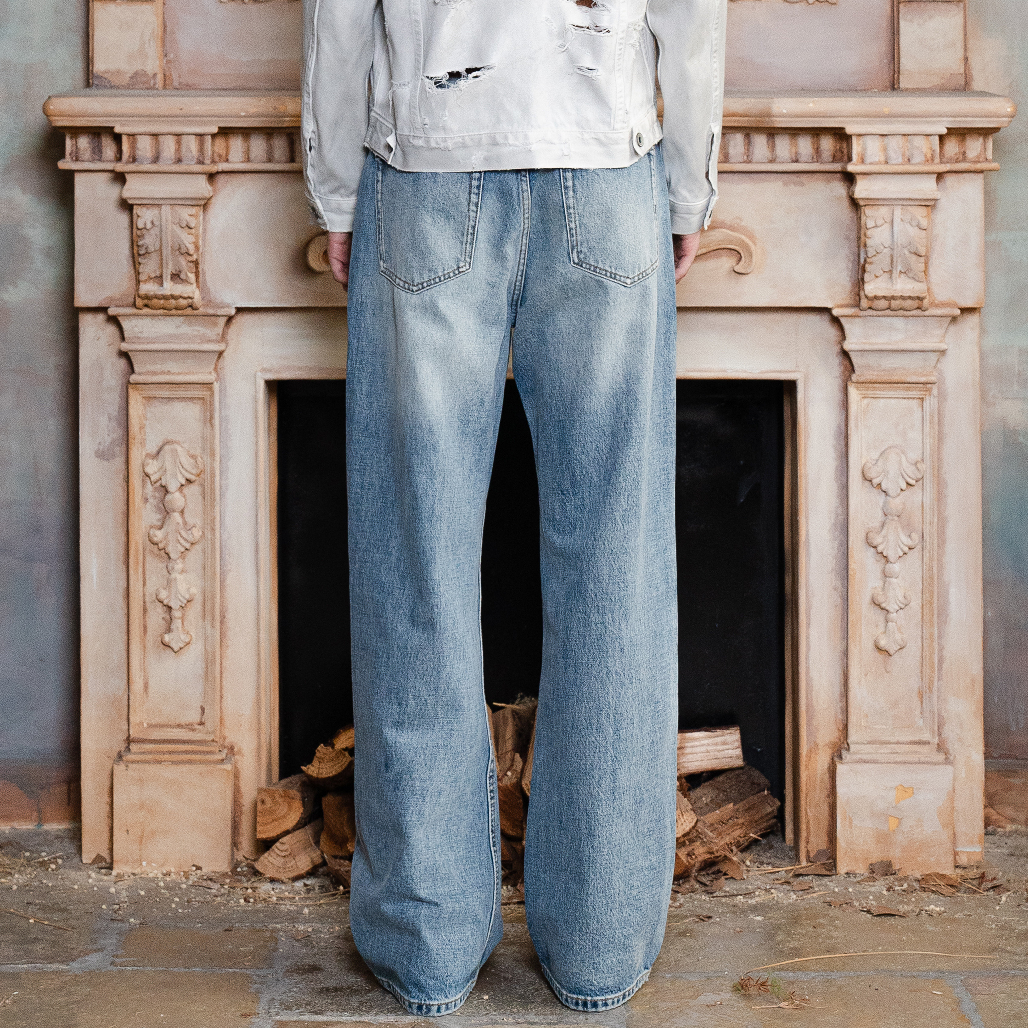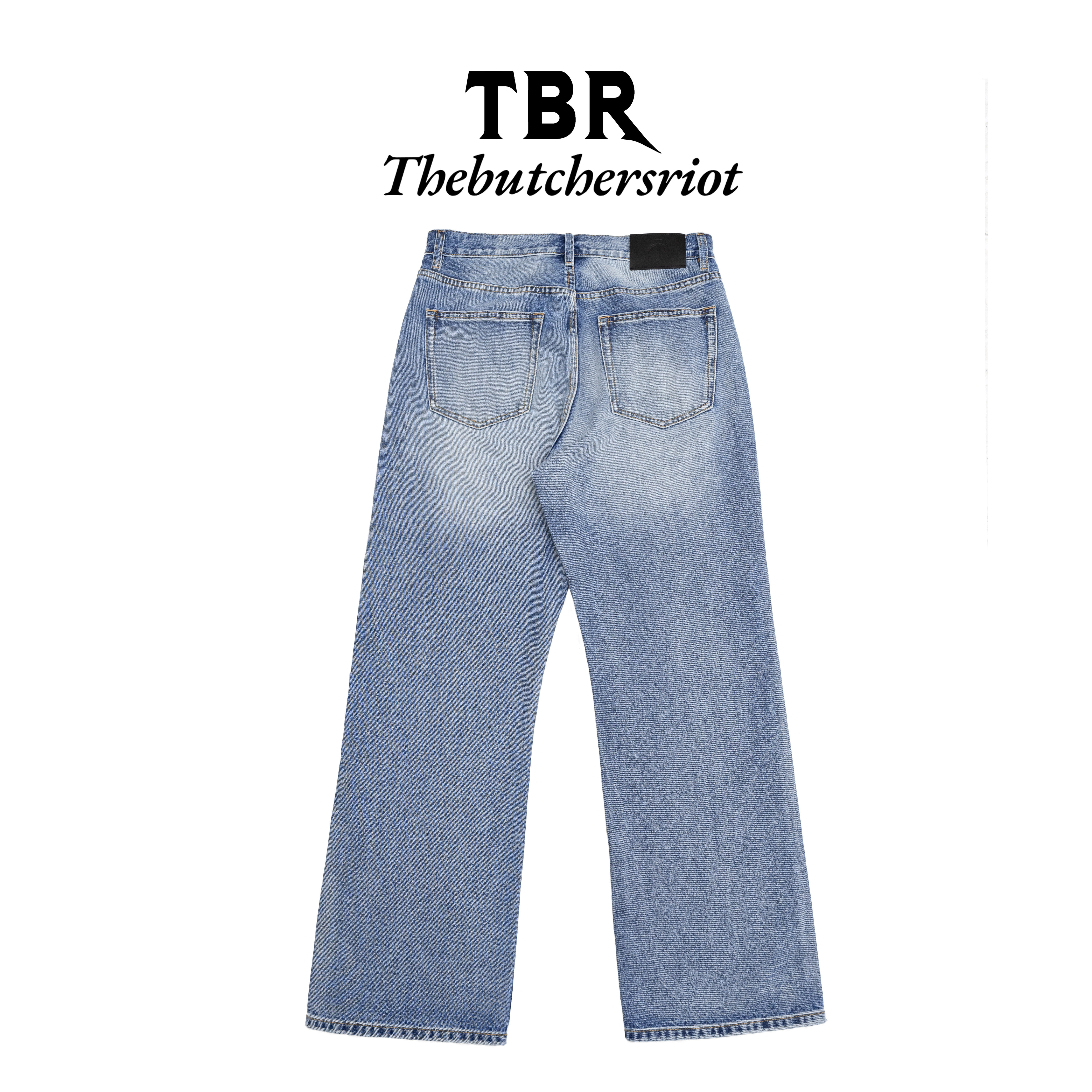 TBR海盐冰蓝雪花直筒牛仔裤