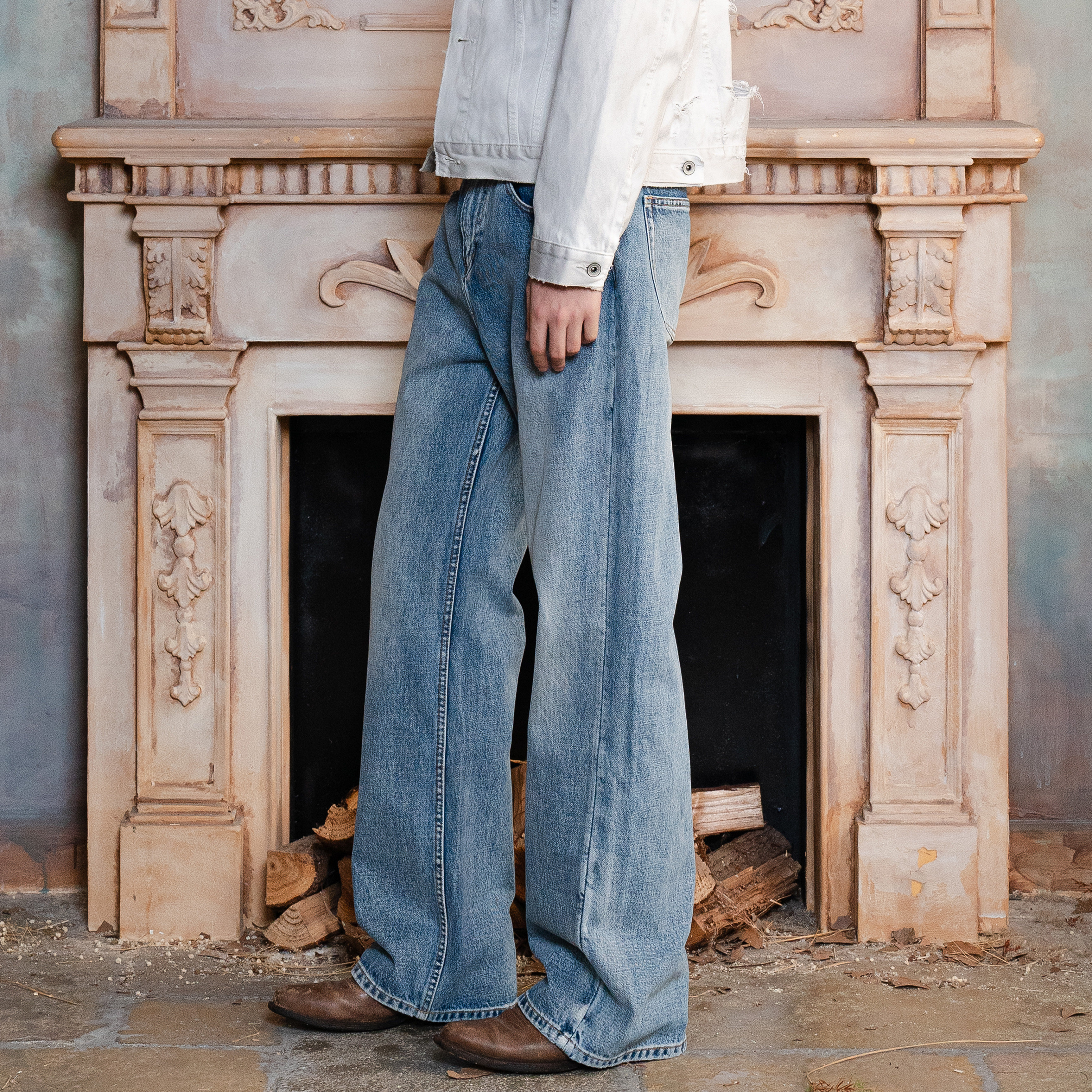 TBR 海盐冰蓝水洗雪花素色elegant直筒牛仔裤