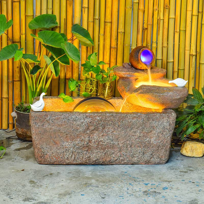 日式假山流水喷泉摆件石磨户外落地庭院阳台办公室景观花园装饰品