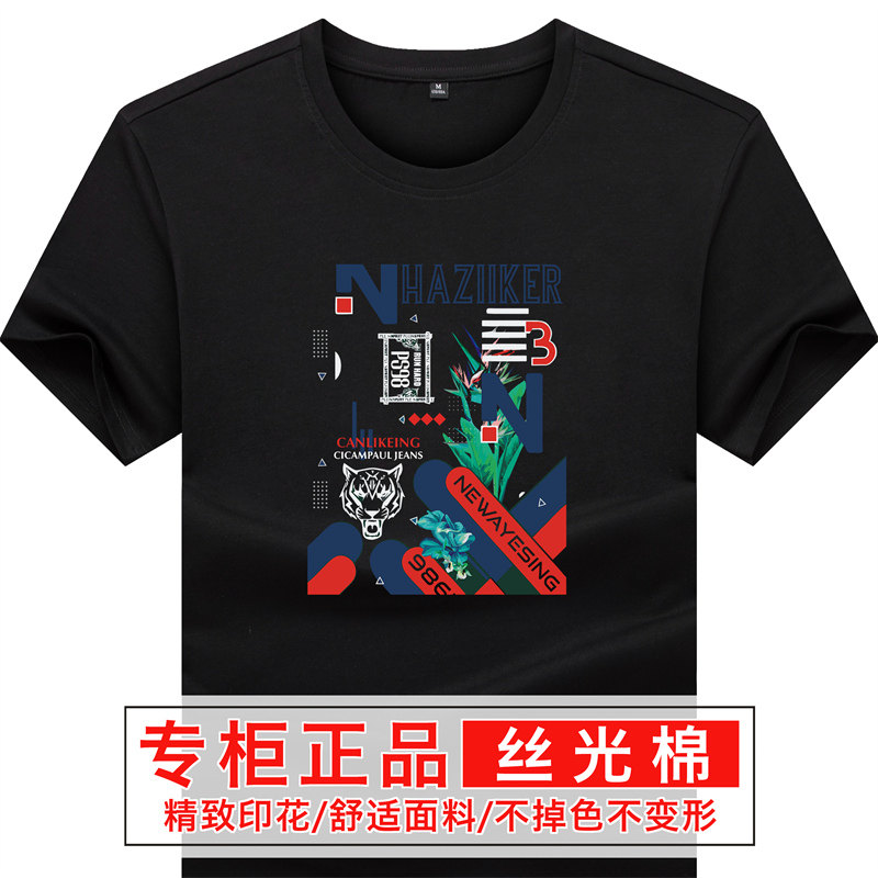 短袖t恤男 纯色丝光棉夏季圆领印花体恤韩版潮款沙滩风半袖上衣男