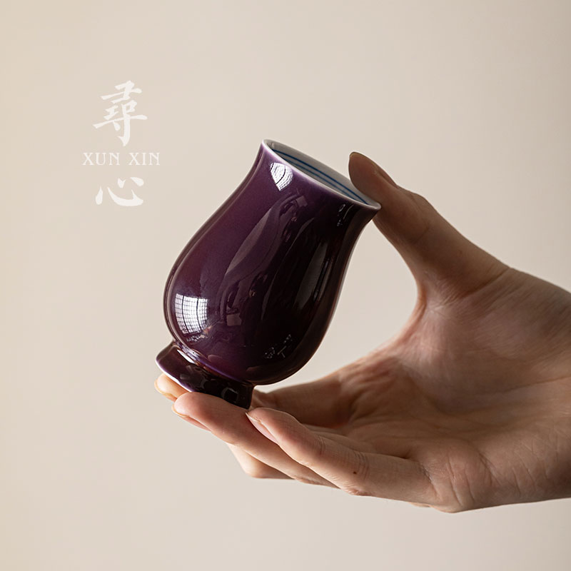 葡萄紫手绘双线陶瓷茶杯主人杯单杯家用闻香杯茶具品茗杯功夫杯子