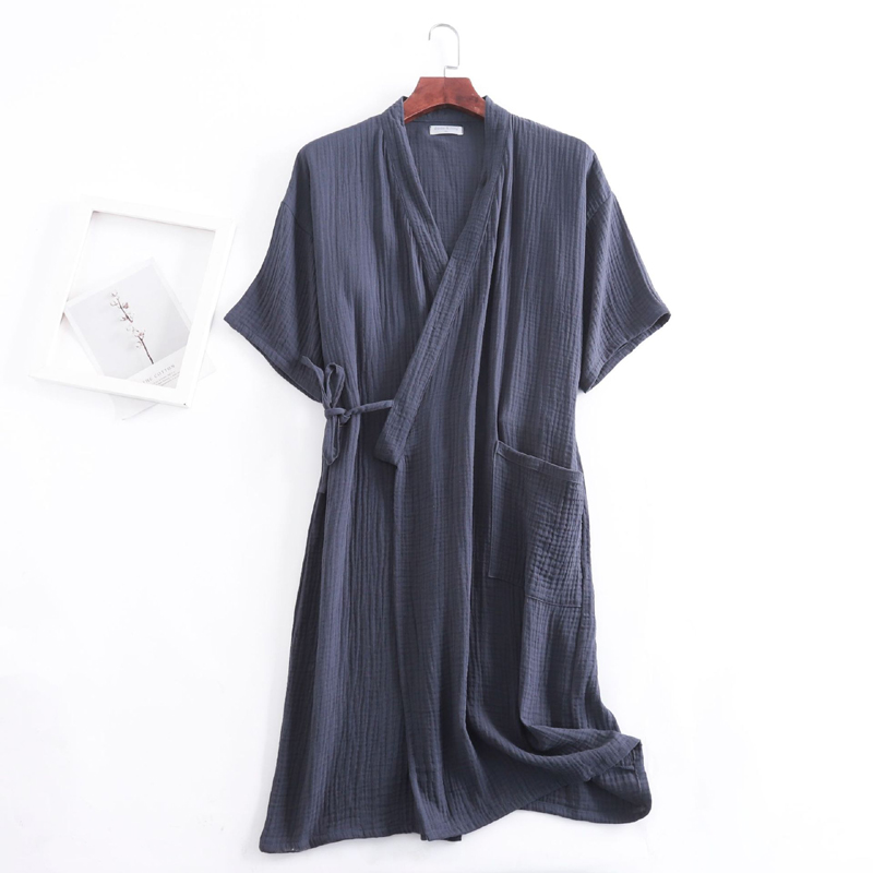 夏季日式纱布绉纹短袖五分袖男女情侣中长款浴睡衣袍睡袍家居服