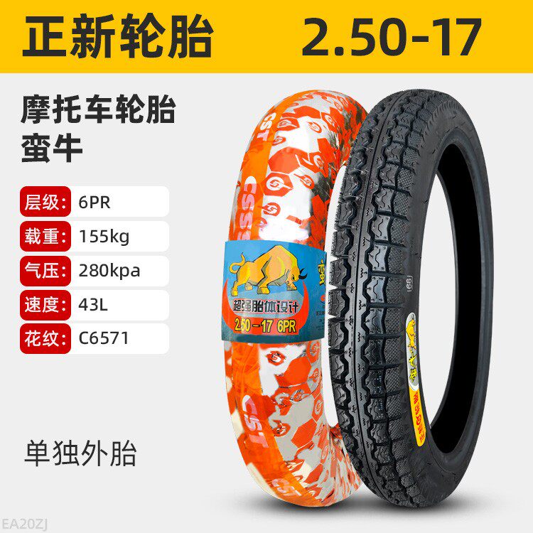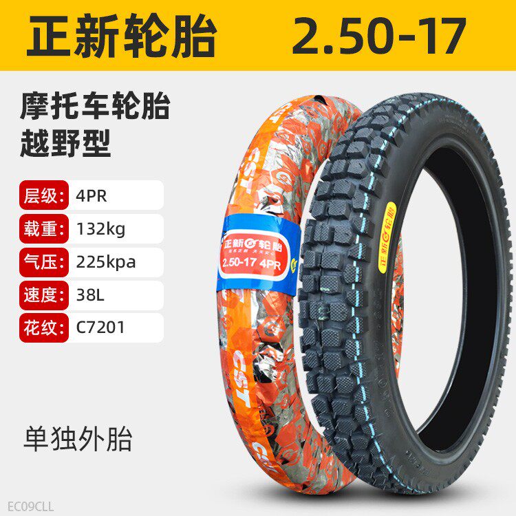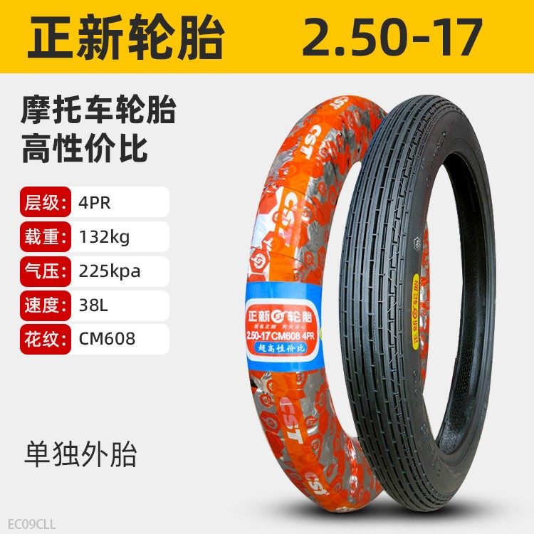 正新轮胎2.50/2.25-17摩托车外胎225/250一17寸直纹弯梁前胎后胎