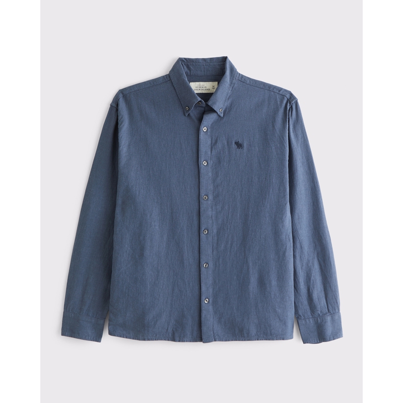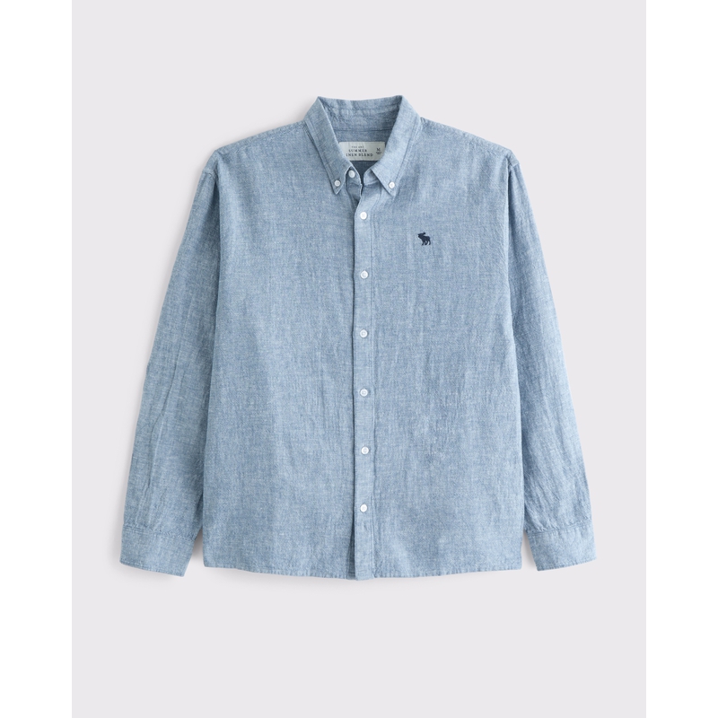 AF经典小麋鹿图案男装25春夏美式亚麻混纺通勤长袖衬衫125-5085