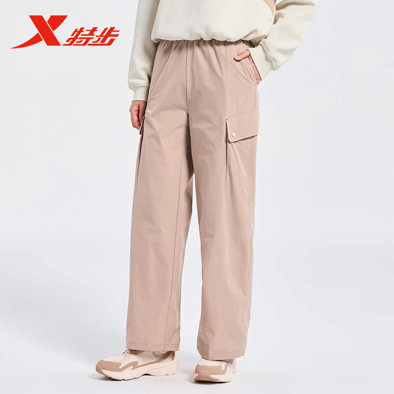 特步运动长裤女2025秋季新款阔腿宽松梭织运动工装裤976328560049