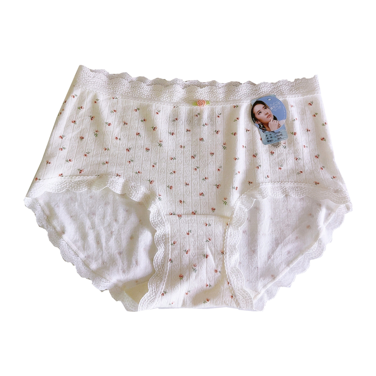 黛丝少女莫代尔棉内裤女蕾丝边甜美印花女生新款短裤中腰女士裤头