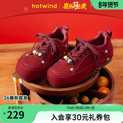 热风红色德训鞋女款2026年春季新款复古百搭新年休闲鞋增高女鞋子