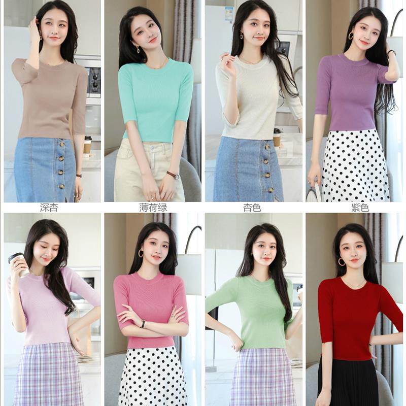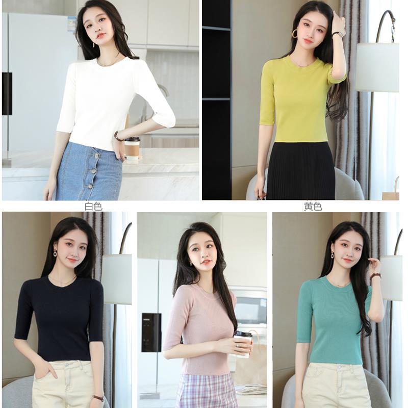 半袖针织衫女薄款修身春季新款女装小个子短款气质五分袖上衣