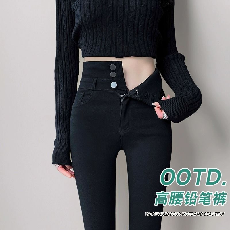 加绒加厚黑色打底裤女秋冬新款小个子外穿紧身高腰修身小脚铅笔裤