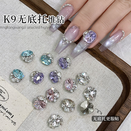 美甲爆闪大钻饰高品质鸽子蛋无底托堆钻饰品锆石闪钻轻奢指甲饰品