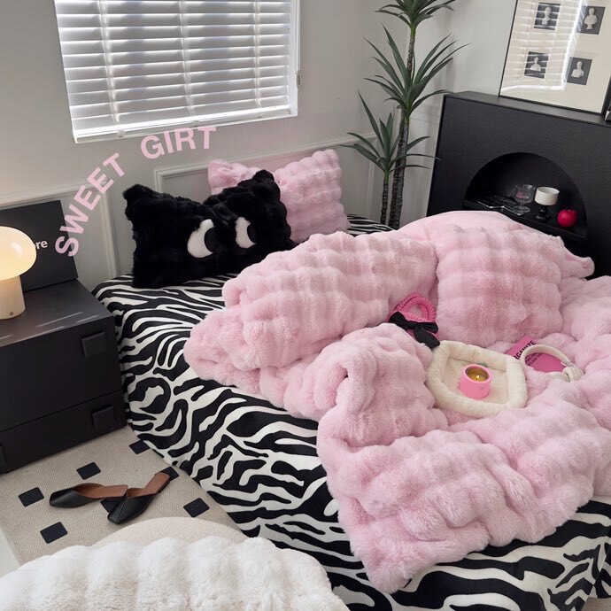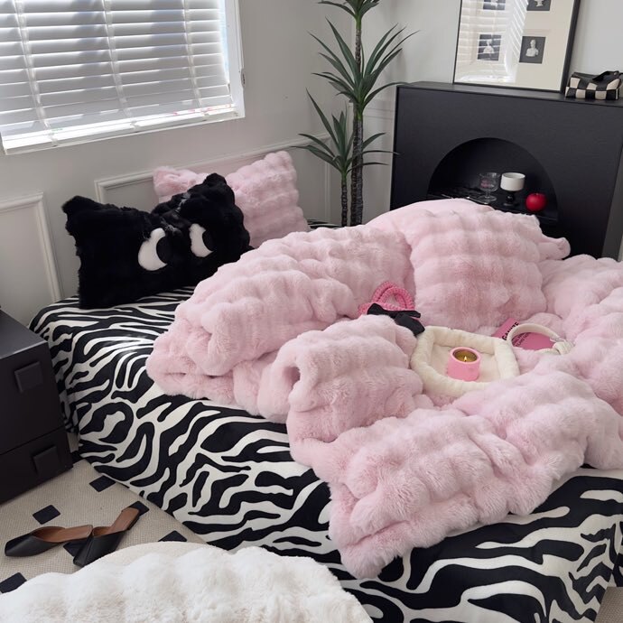 少女豹纹风加厚兔毛绒四件套