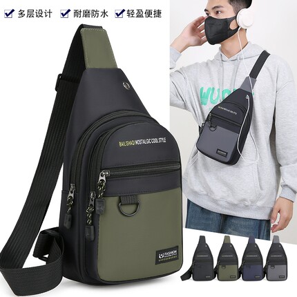 外贸新款胸包男士商务单肩包轻便斜挎包多功能休闲包防水背包多层