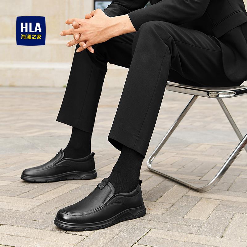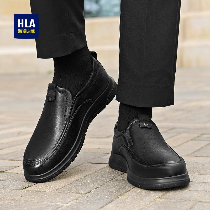 海澜之家男鞋冬季2024新款加绒休闲皮鞋中年人真皮一脚蹬豆豆鞋男