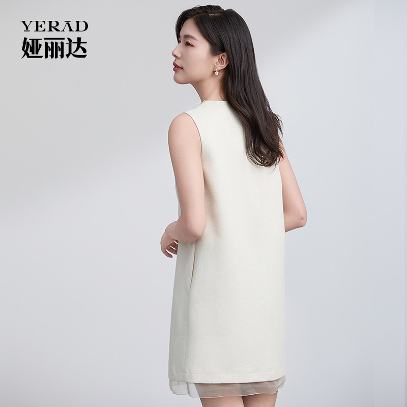 娅丽达商场同款法式连衣裙女2025夏季新款无袖圆领优雅米色裙子