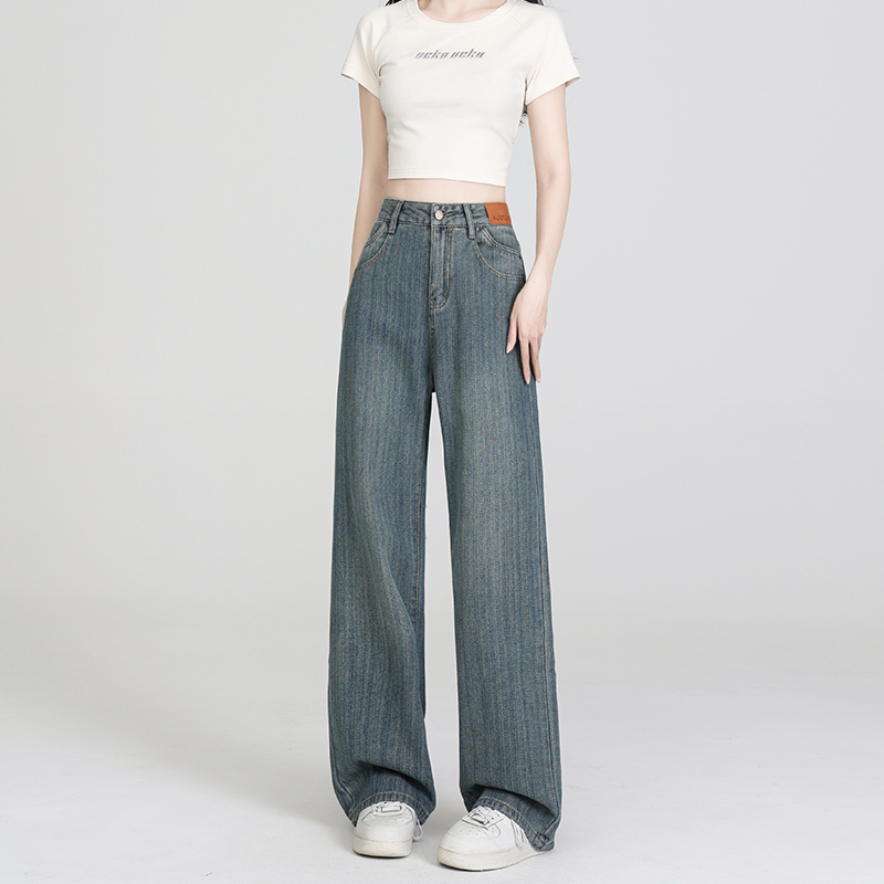 KP真维斯2025年秋季新款女士高腰显瘦直筒百搭水洗阔腿牛仔长裤子