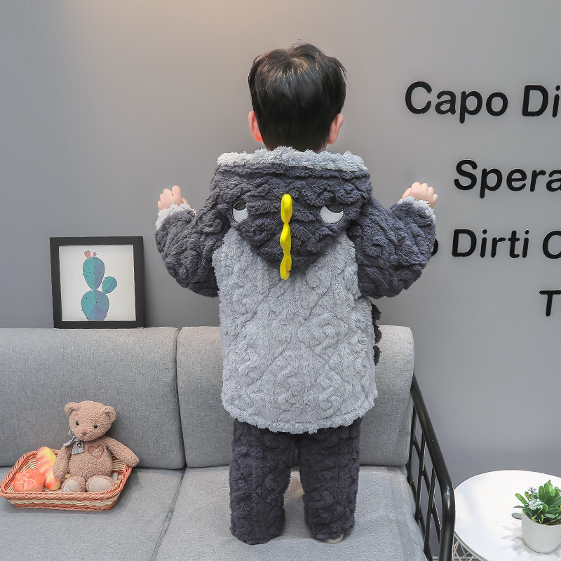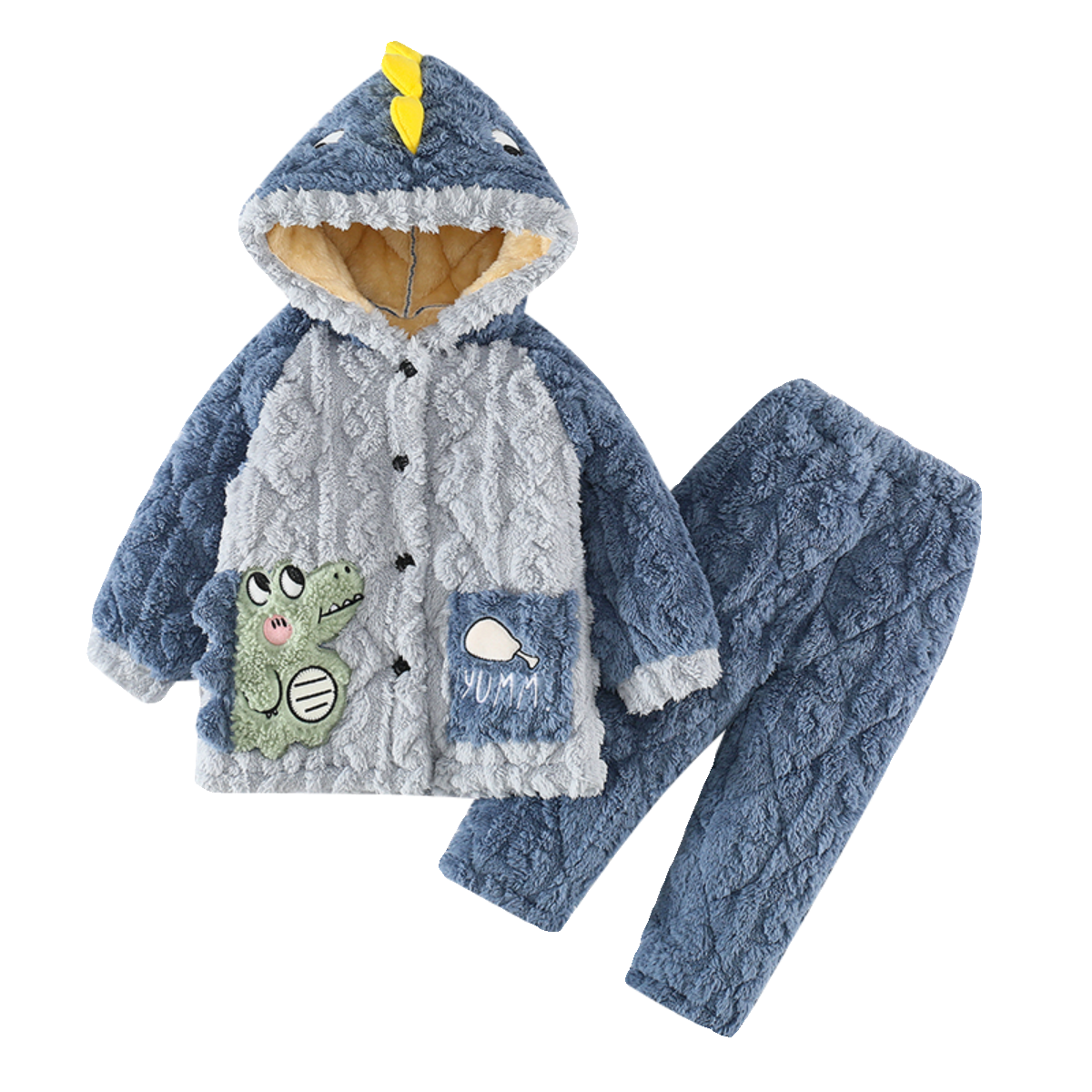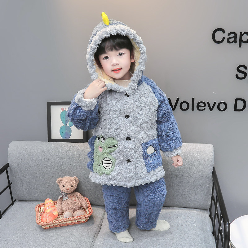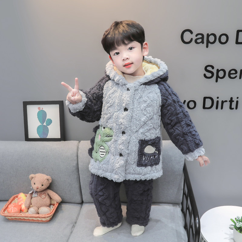 男童睡衣套装冬季三层夹棉加厚男宝宝法兰绒冬装儿童珊瑚绒家居服