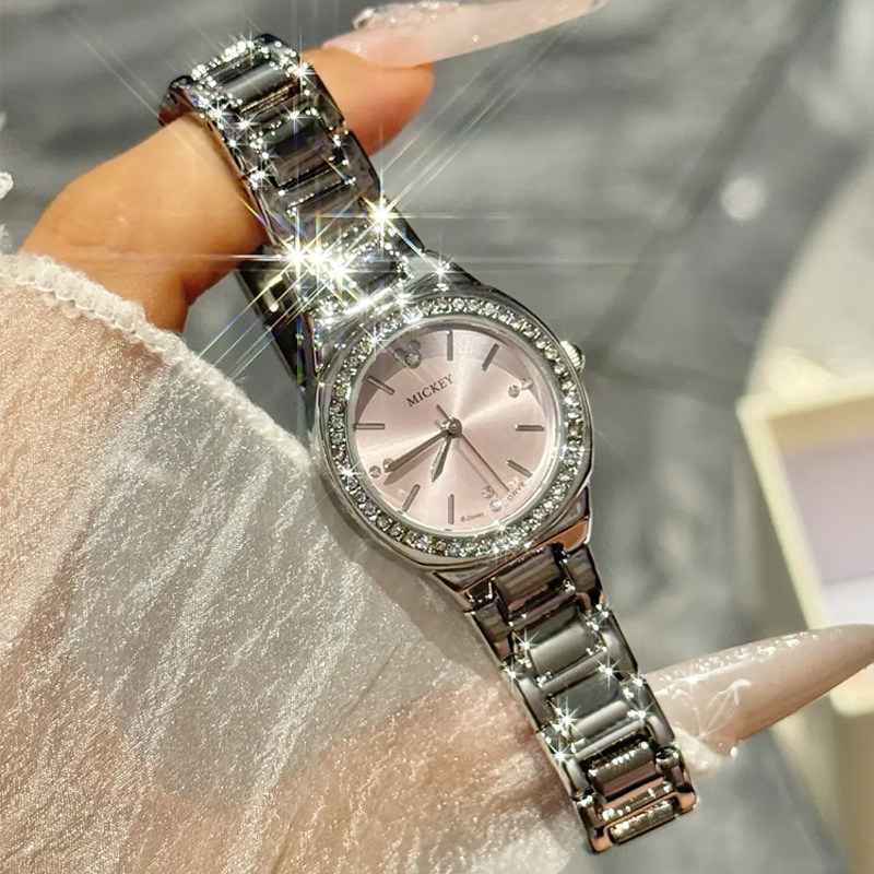 Disney迪士尼手表女学生初高中时尚潮流个性贝母钢带女士防水腕表