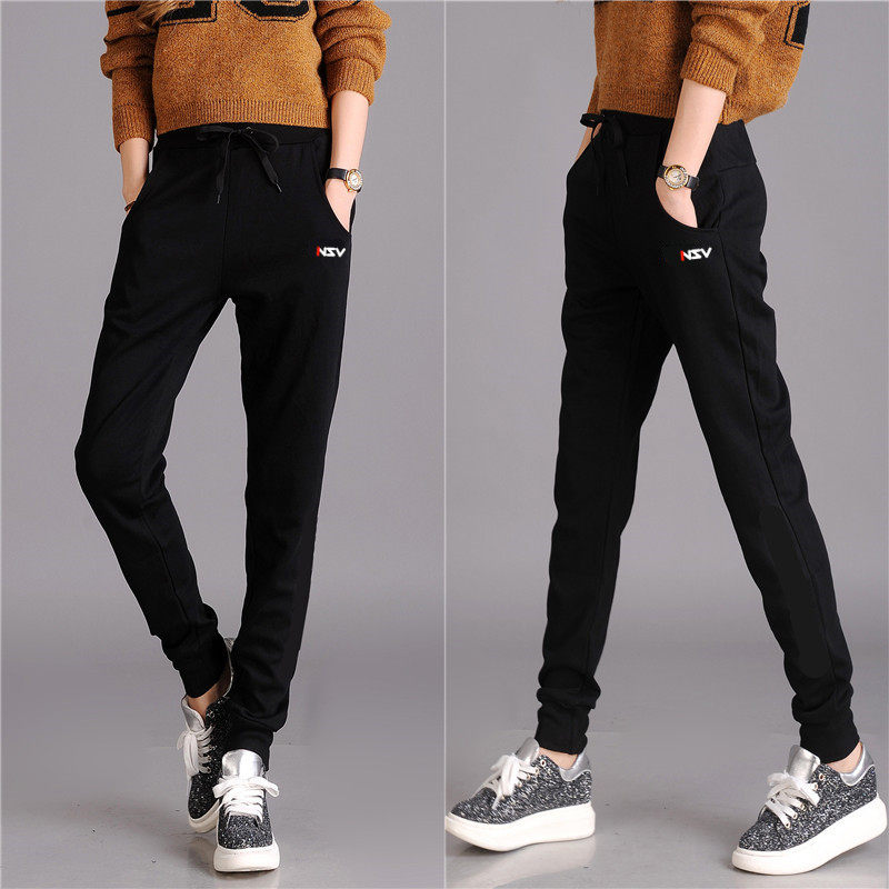 秋冬款运动裤女款宽松束脚卫裤高腰显瘦小脚纯棉加绒款休闲裤长裤