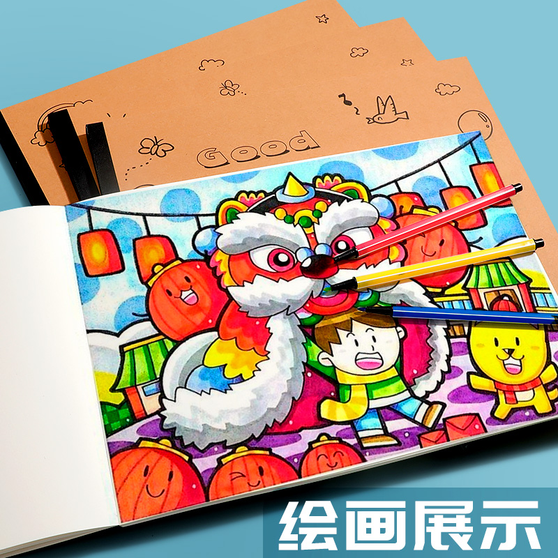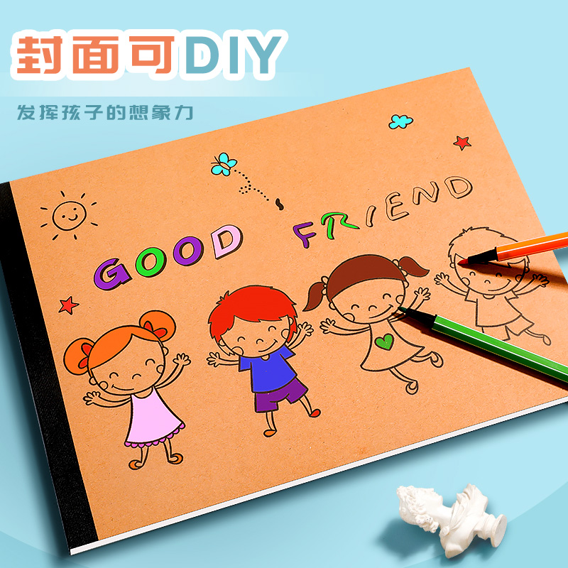 DIY涂色封面A4加厚儿童图画本空白绘画本幼儿园小学生用画画本学生速写本美术涂鸦本简约牛皮空白素描本