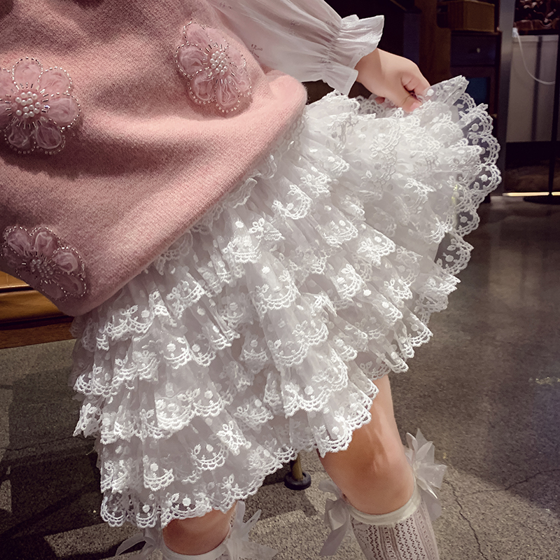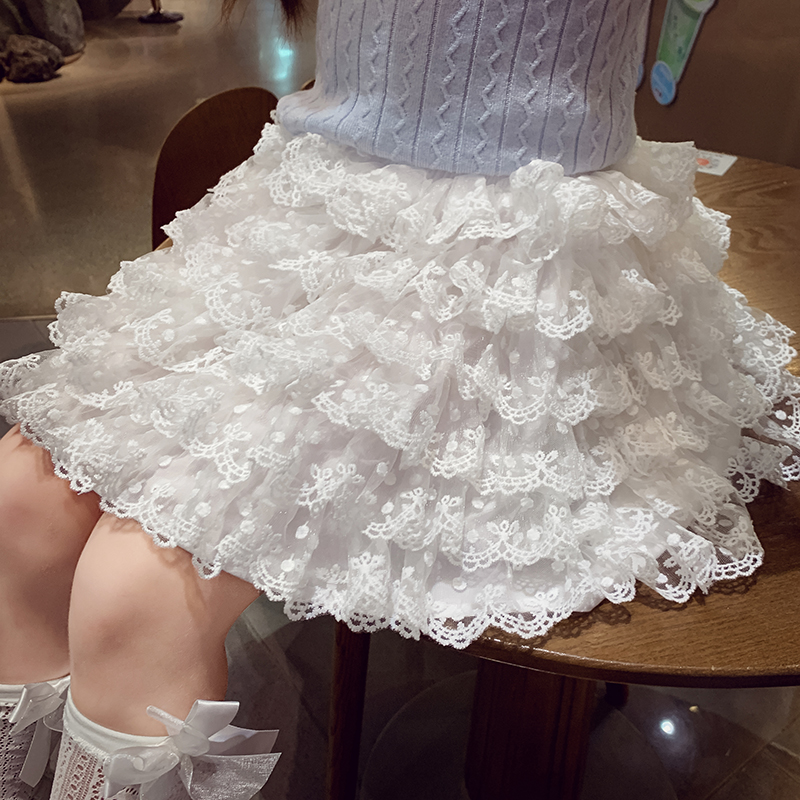 女童半身裙秋装2025新款洋气儿童白色蕾丝蛋糕裙小女孩蓬蓬网纱裙