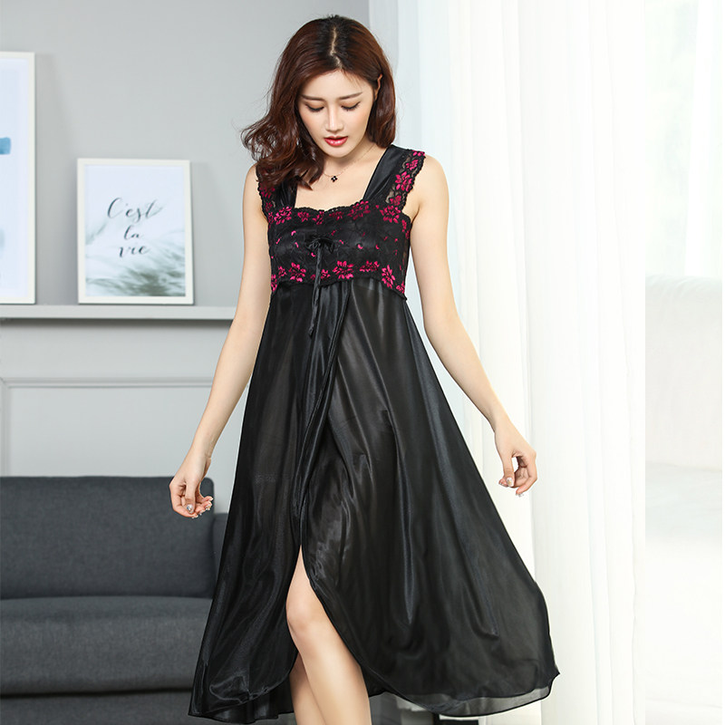 睡裙女冰丝吊带长裙高级感纯欲风性感睡衣雷丝春夏无袖薄款家居服