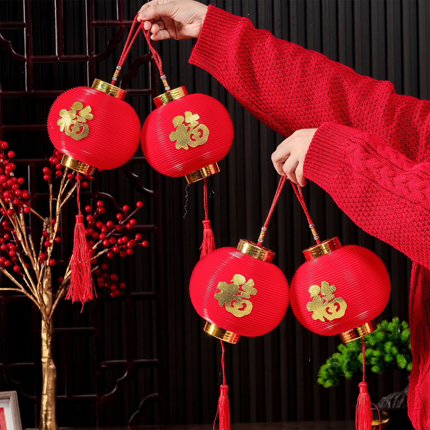 新款塑料红色喜庆小灯笼挂饰福字结婚喜字阳台户外防水防晒