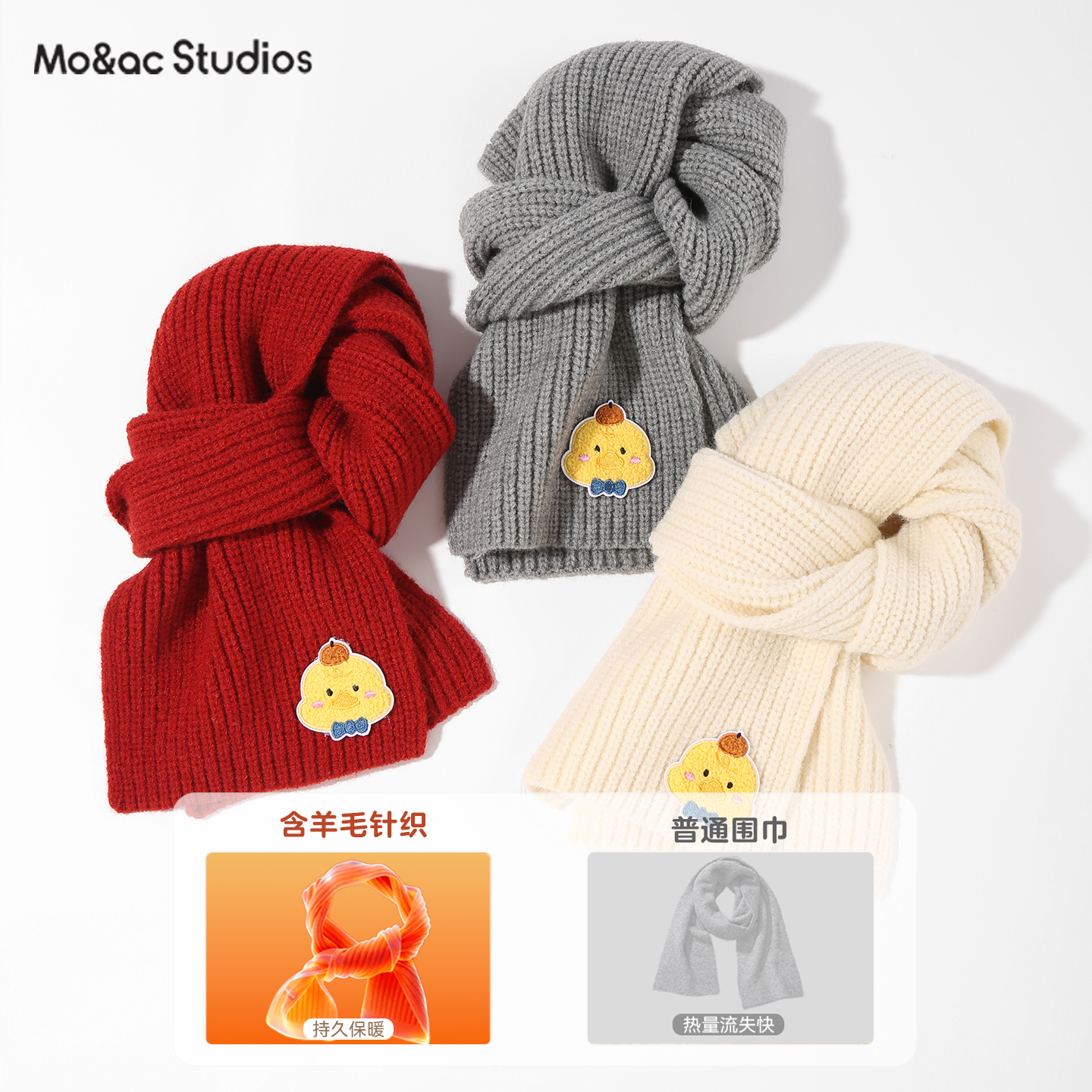 卡通小鸡儿童围巾含羊毛2025秋冬款男女童毛线围巾保暖针织围脖