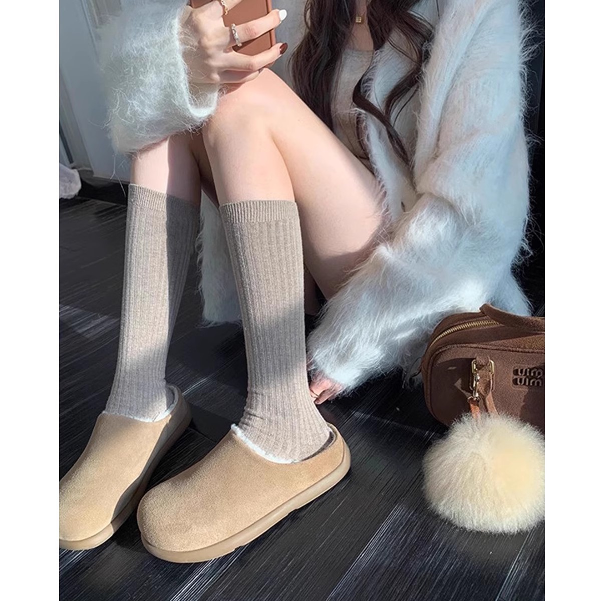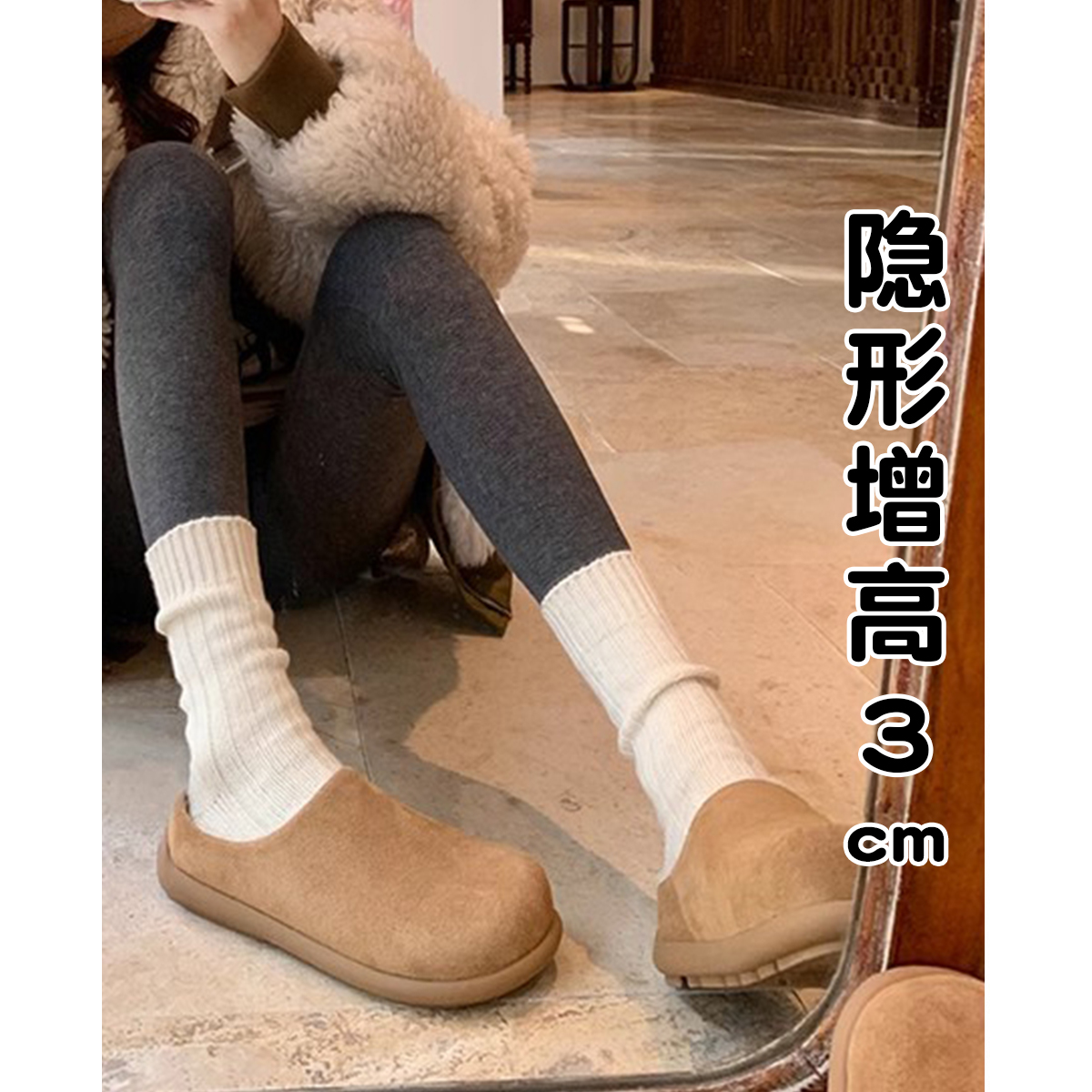 油叽叽~加绒勃肯鞋毛毛鞋女外穿秋冬小土豆穆勒鞋厚底雪地靴半拖