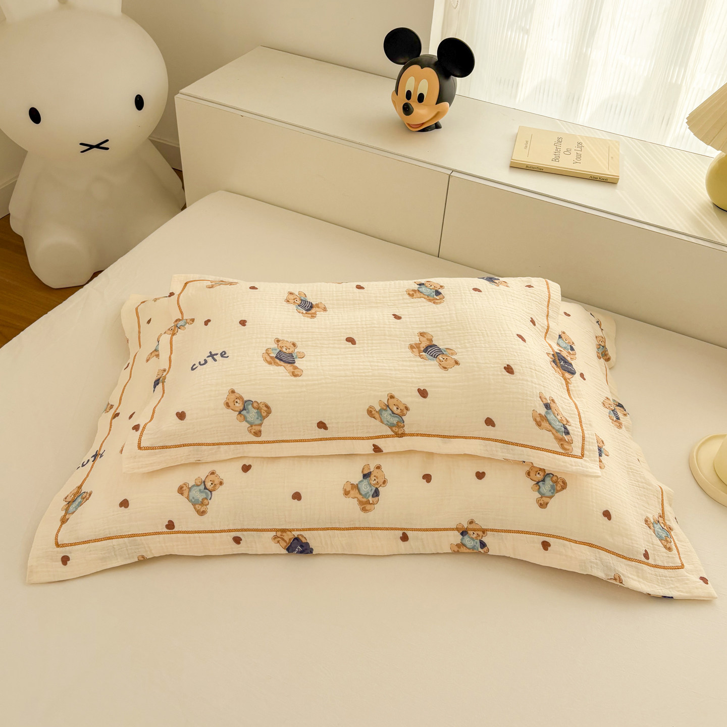纯棉全棉枕套幼儿园小枕头套48x74儿童女孩可爱熊枕芯内胆套30x50