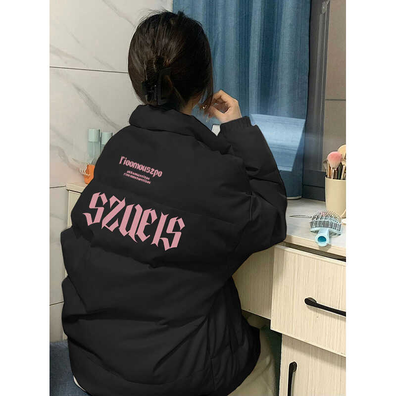 2024高级感黑色立领铺棉外套女学生冬季厚保暖小个子羽绒棉服宽松