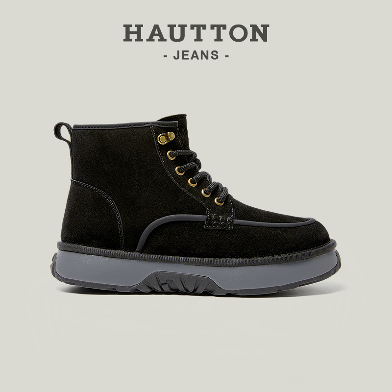 HauttonJeans加绒加厚雪地靴男款2025冬季东北棉鞋厚底保暖马丁靴