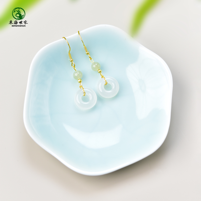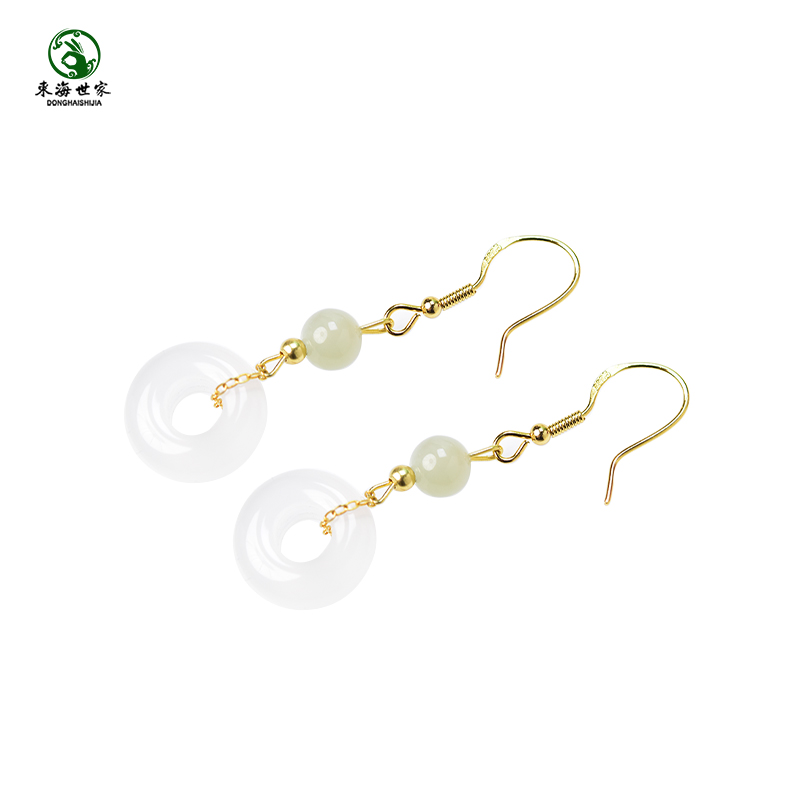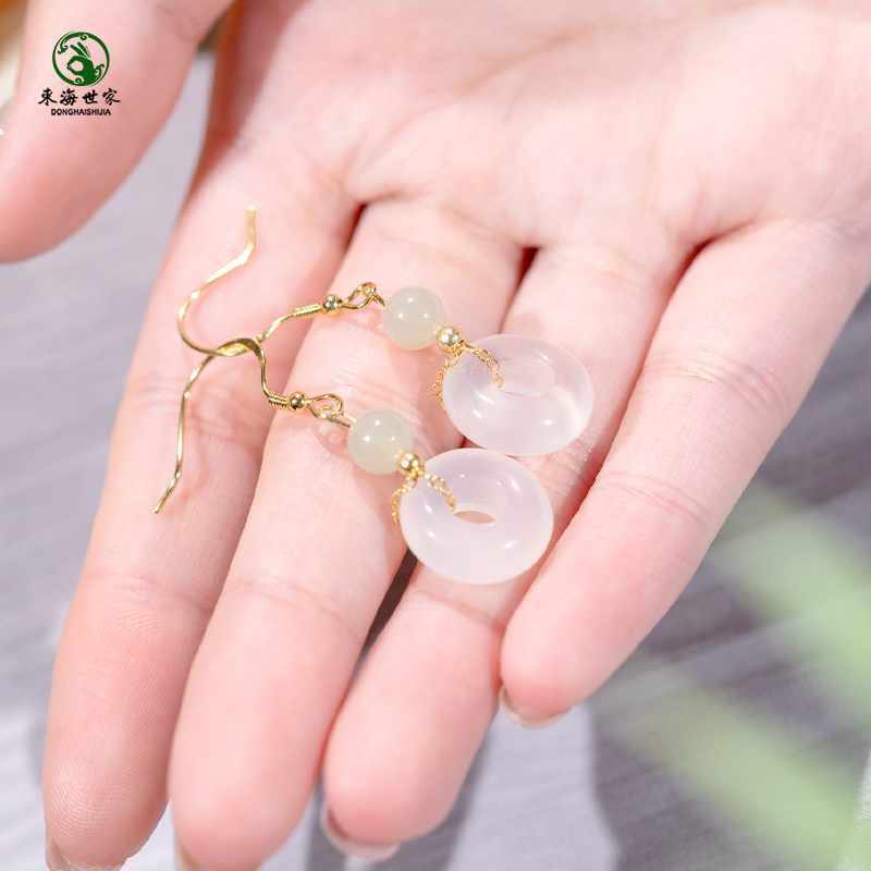 玉髓耳环女s925银耳坠东海水晶玛瑙和田玉耳钉晴水玉石平安扣耳饰