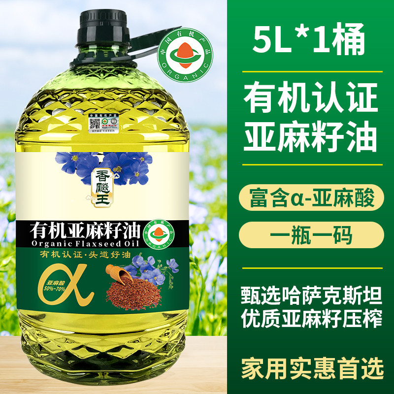 香飚王 有机亚麻籽油5000ml 冷榨一级食用油5L直接喝 旗舰店正品