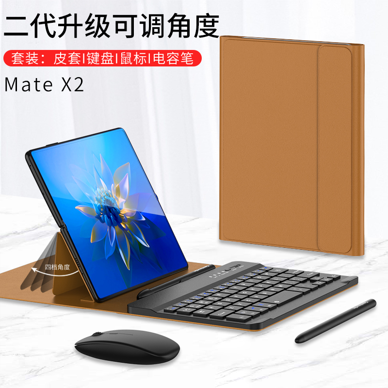 适用华为matex2折叠屏Xs2手机x5蓝牙键盘皮套xs智能鼠标套装x3磁吸保护壳通用真素皮商务专属无线连接时尚壳X