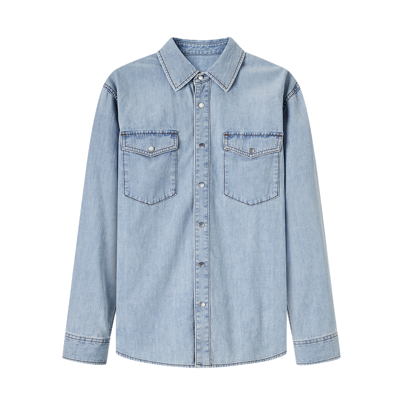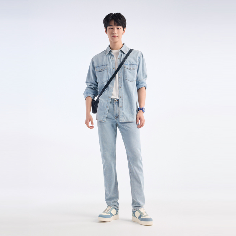 [商场同款]九牧王男装2025秋冬新款纯棉时尚男士牛仔长袖衬衫上衣