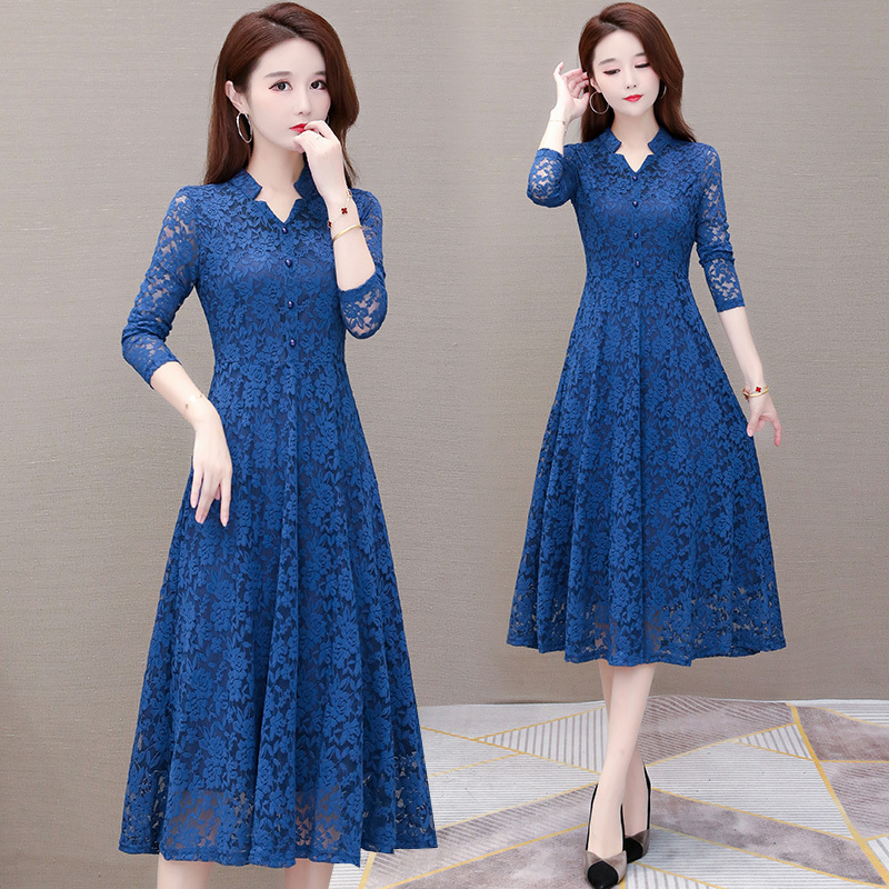 喜婆婆婚宴装连衣裙女秋款2025新款妈妈高端气质蕾丝长袖裙子春秋
