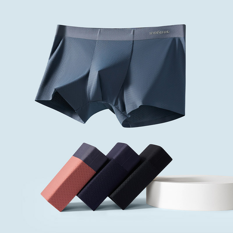 柒牌男士超薄冰丝无痕内裤四角蚕丝抗菌吸湿排汗透气平角青年短裤