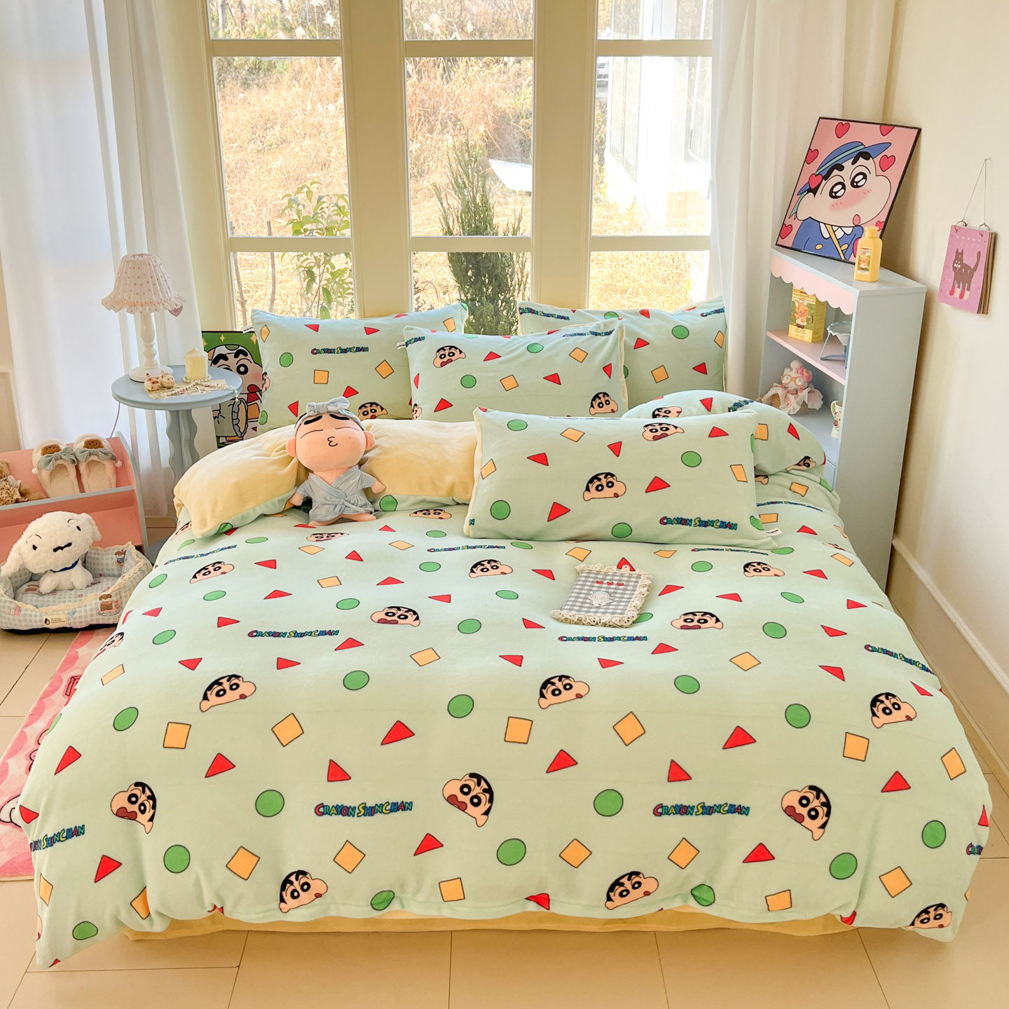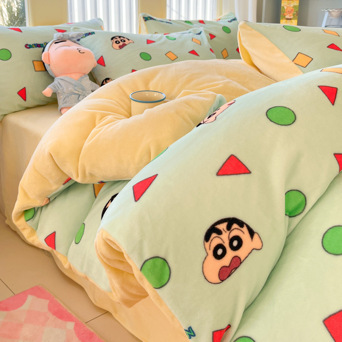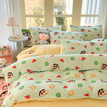 A类蜡笔小新加厚牛奶绒四件套冬