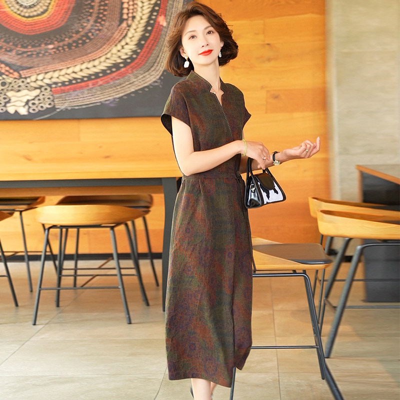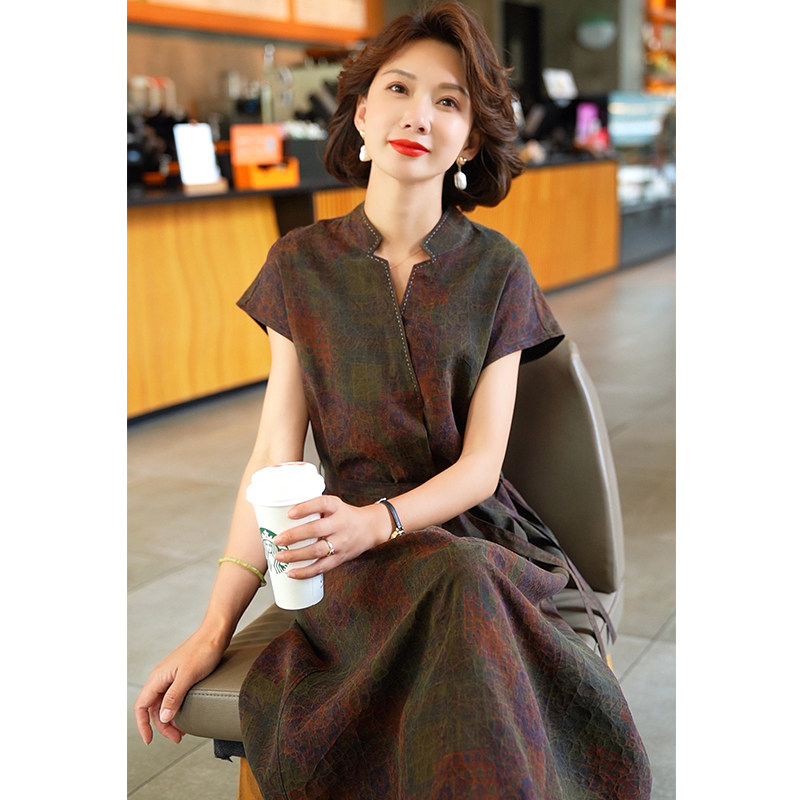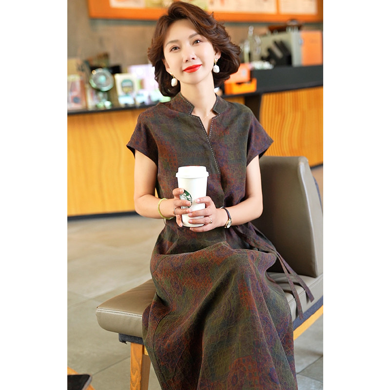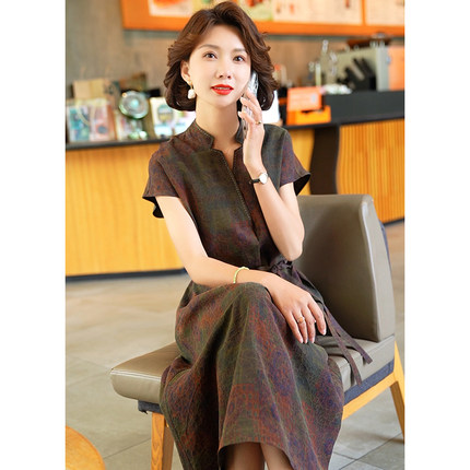 2025夏季新款真丝妈妈香云纱杭州丝绸桑蚕丝连衣裙女高端大牌裙子