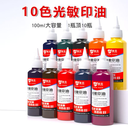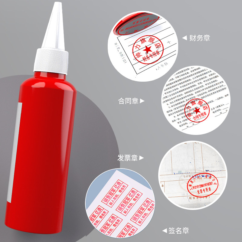 光敏印油大瓶100ml红色快干清晰专用印台印泥红色速干墨水油墨盖章补充液红油印章加印油蓝黑色紫色章印墨油
