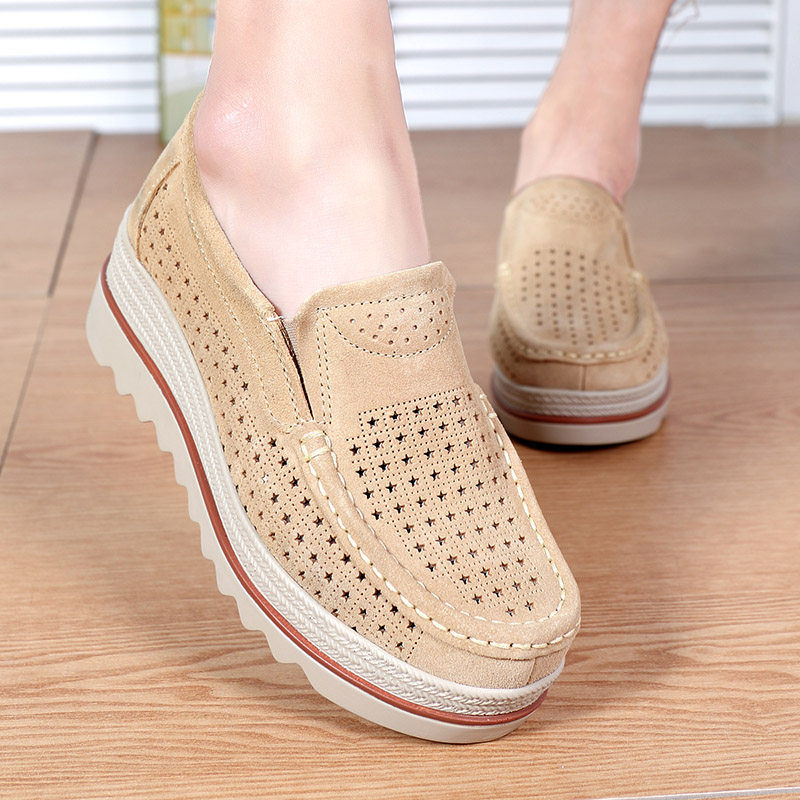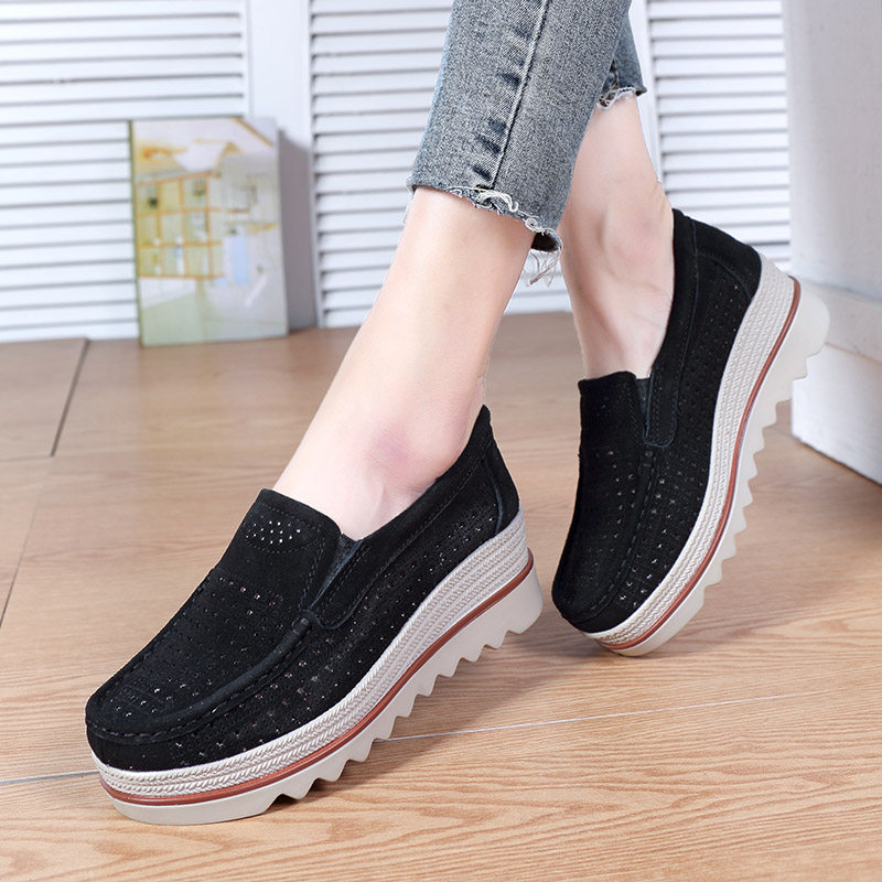 夏季学生镂空运动鞋增高女鞋韩版洞洞鞋休闲摇摇鞋真皮女凉鞋厚底